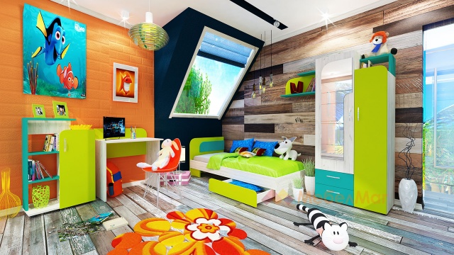 - Комплекти за обзавеждане на детска стая в цвят дъб крафт бял със зелен пастел и тюркоаз