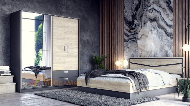 - Спални комплекти с матрак в цвят графит с дъб елеганс
