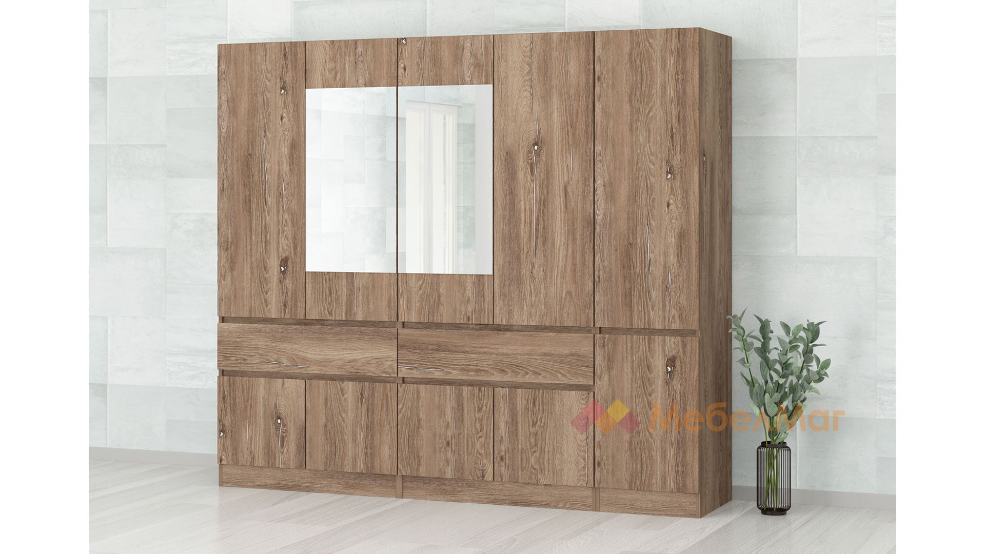 ⭐ Предимства: ✓ петкрилен ✓ 2 чекмеджета ✓ 4 шкафа ✓ 3 лоста за закачалки ✓2 огледала ✓ стилен декор ✓ механизъм за плавно затваряне ✓ качествена изработка ✓ 16 мм ПДЧ