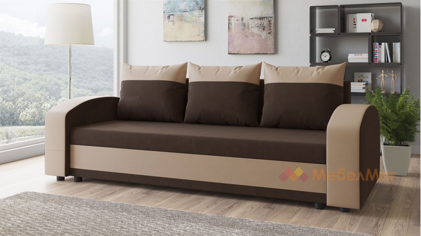 Подлакътниците са проектирани да отпуснеш ръцете си в удобна поза. В горната им част и в основата на дивана е поставен фриз от лесна за почистване и поддръжка еко кожа. Диванът е със здрава конструкция от ПДЧ. За по-лесна поддръжка, сме поставили ципове на възглавниците, за да можеш да сваляш и да переш калъфите, когато се замърсят.