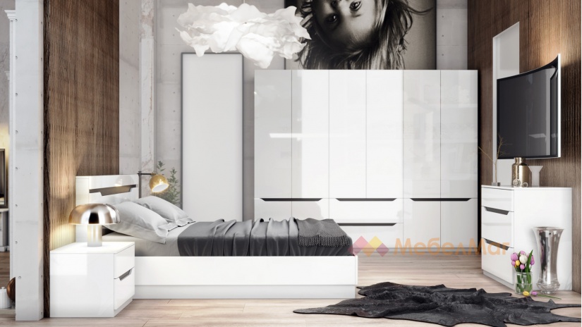 Спален комплект Аляска К1 е въплъщение на скандинавския стил, елегантен и функционален. Мебелите ти дават възможност да организираш пространството в твоята спалня съобразно твоите нужди и предпочитания. Впечатляващата височина на гардеробите осигурява оптимално усвояването на пространството в помещението по вертикала. Белият гланц е умело подчертан от перлените отблясъци на сиво-черния графит.