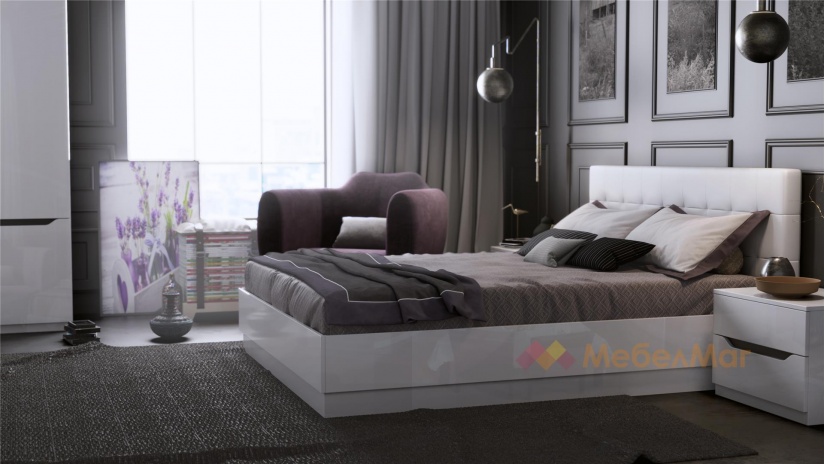 Спален комплектАляска К4бял гланц с графит