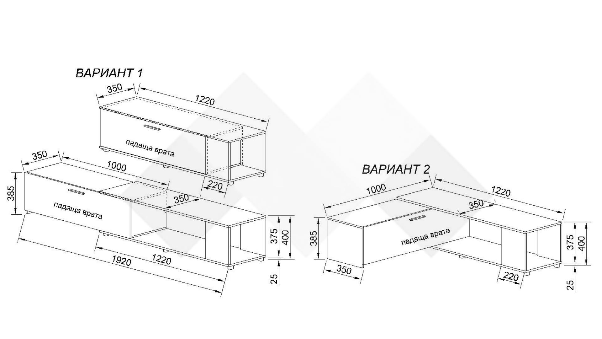 Вариант 2: Д: 100 см Ш: 35 см В: 38.5 см