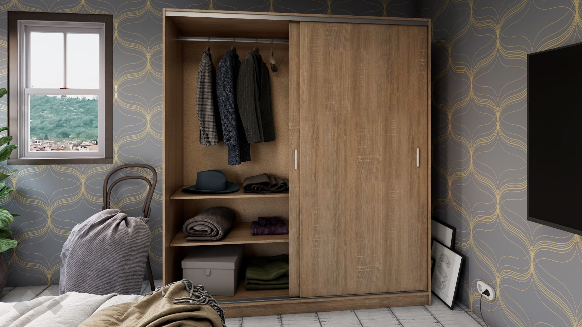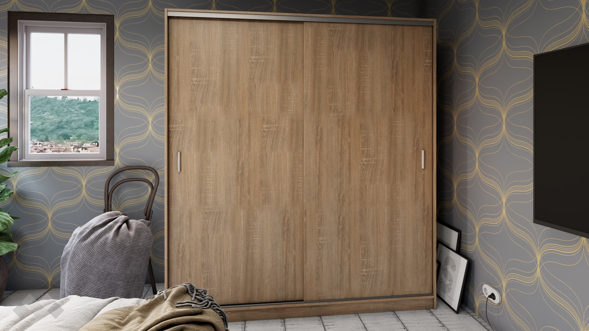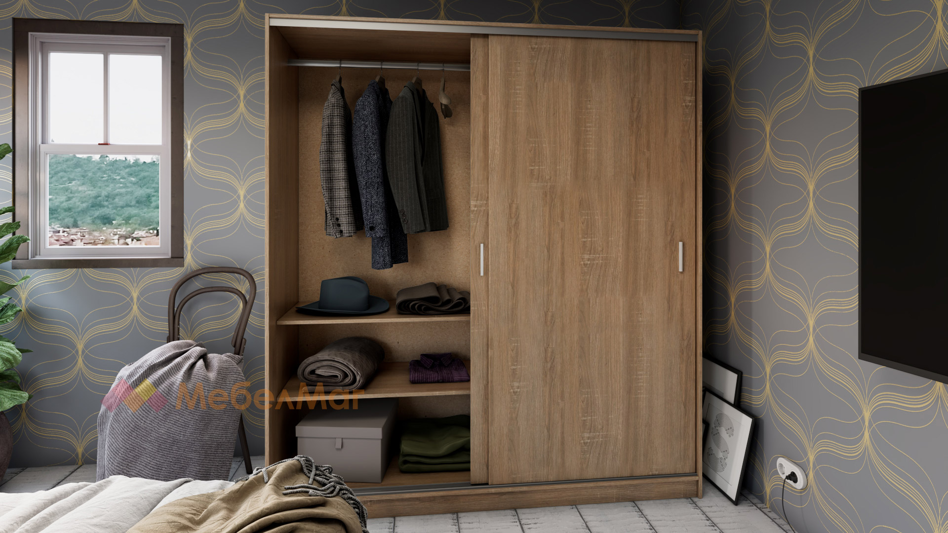 Гардероб Арго е перфектното решение за любителите на мебели със семпъл и изчистен дизайн. Със своите плъзгащи врати и практично вътрешно разпределение, той напълно отговаря на съвременните изисквания за съхранение на дрехи.