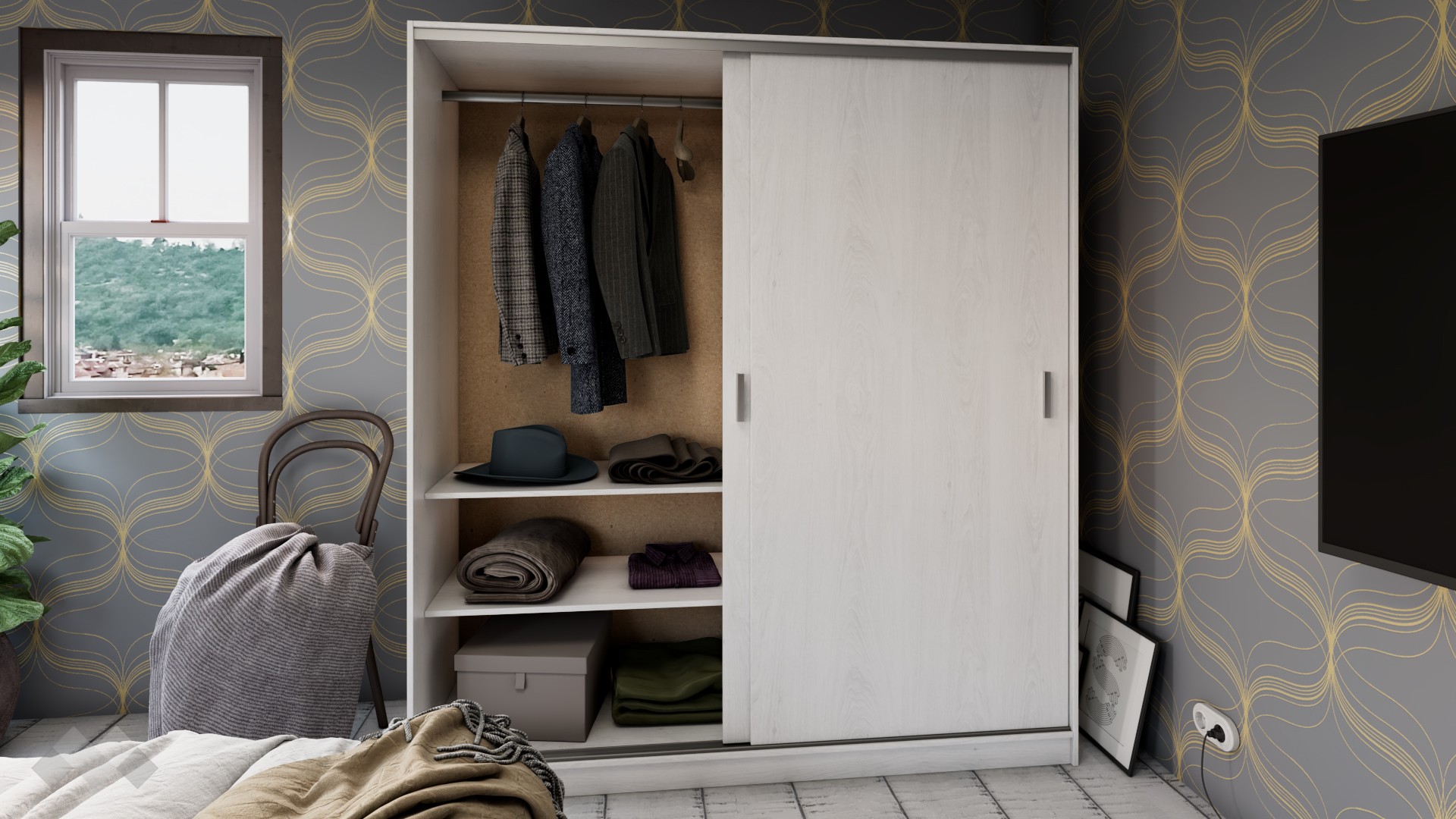 Гардероб Арго е перфектното решение за любителите на мебели със семпъл и изчистен дизайн. Със своите плъзгащи врати и практично вътрешно разпределение, той напълно отговаря на съвременните изисквания за съхранение на дрехи.