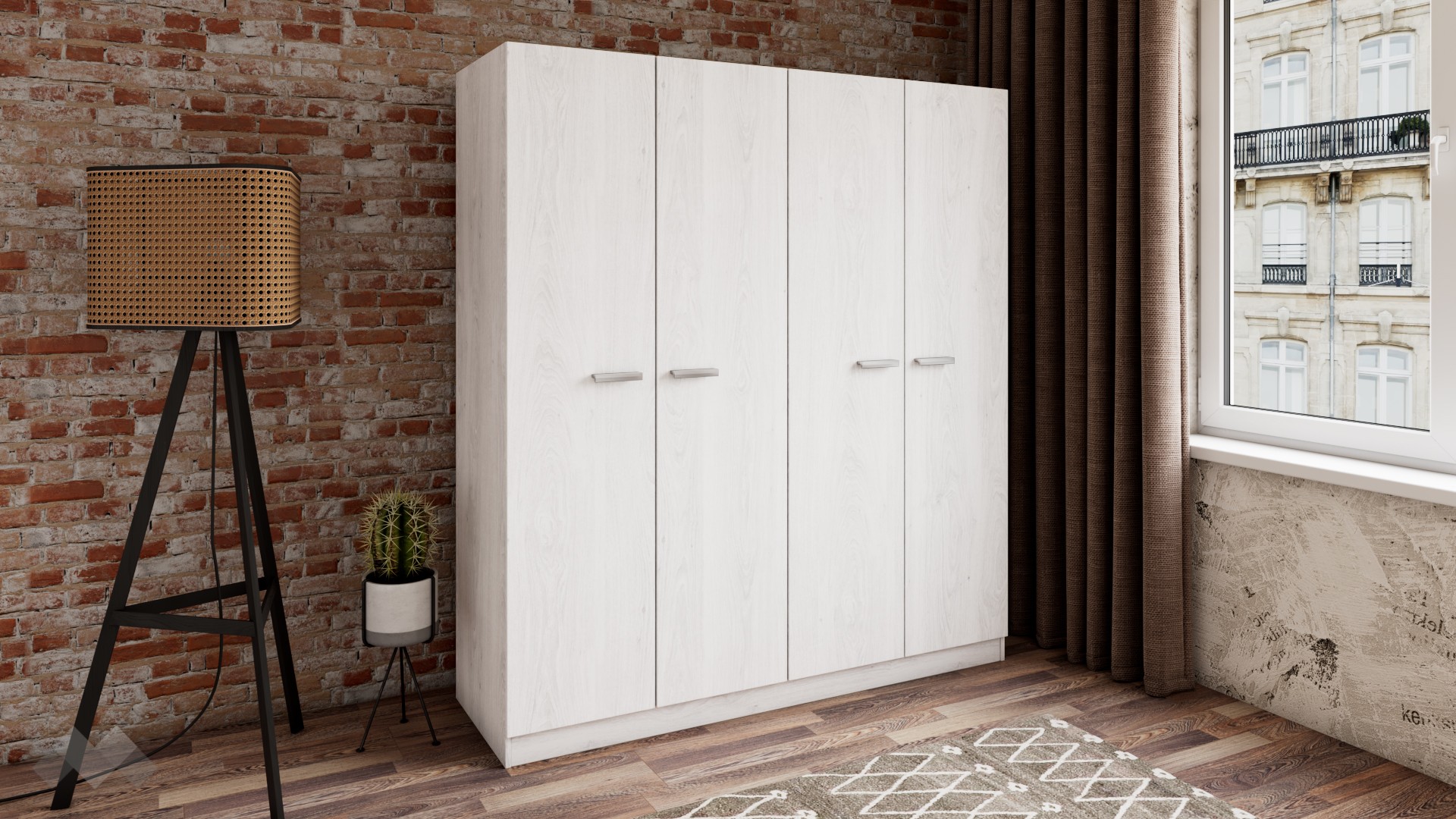 ⭐ Предимства: ✓ четирикрилен ✓ 5 рафта ✓ лост за закачалки ✓ модерен декор ✓ практично разпределение ✓ качествена изработка ✓ 16 мм ПДЧ