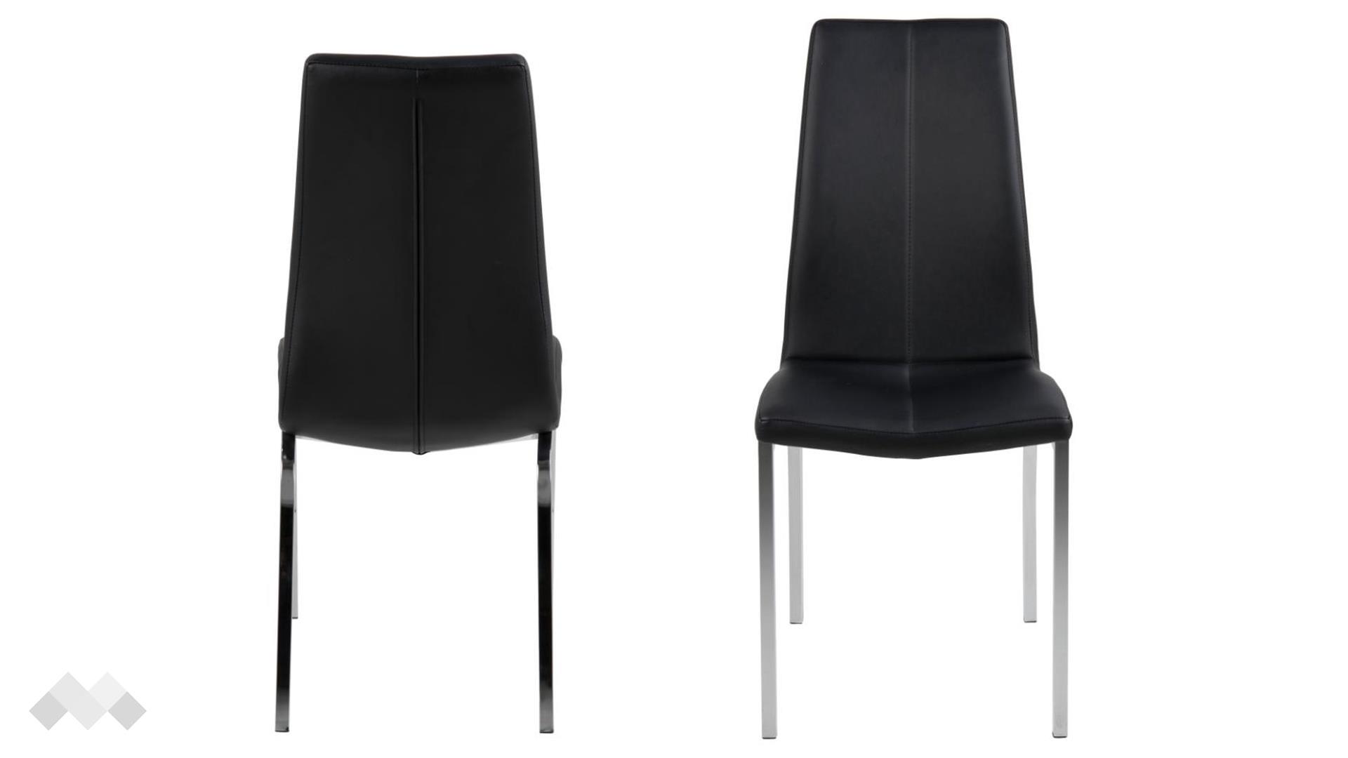 Седалката е тапицирана с качествена изкуствена кожа, която не само осигурява комфорт, но и е лесна за поддръжка. Металната рамка придава здравина и стабилност, като допълва съвременния и елегантен вид на стола.