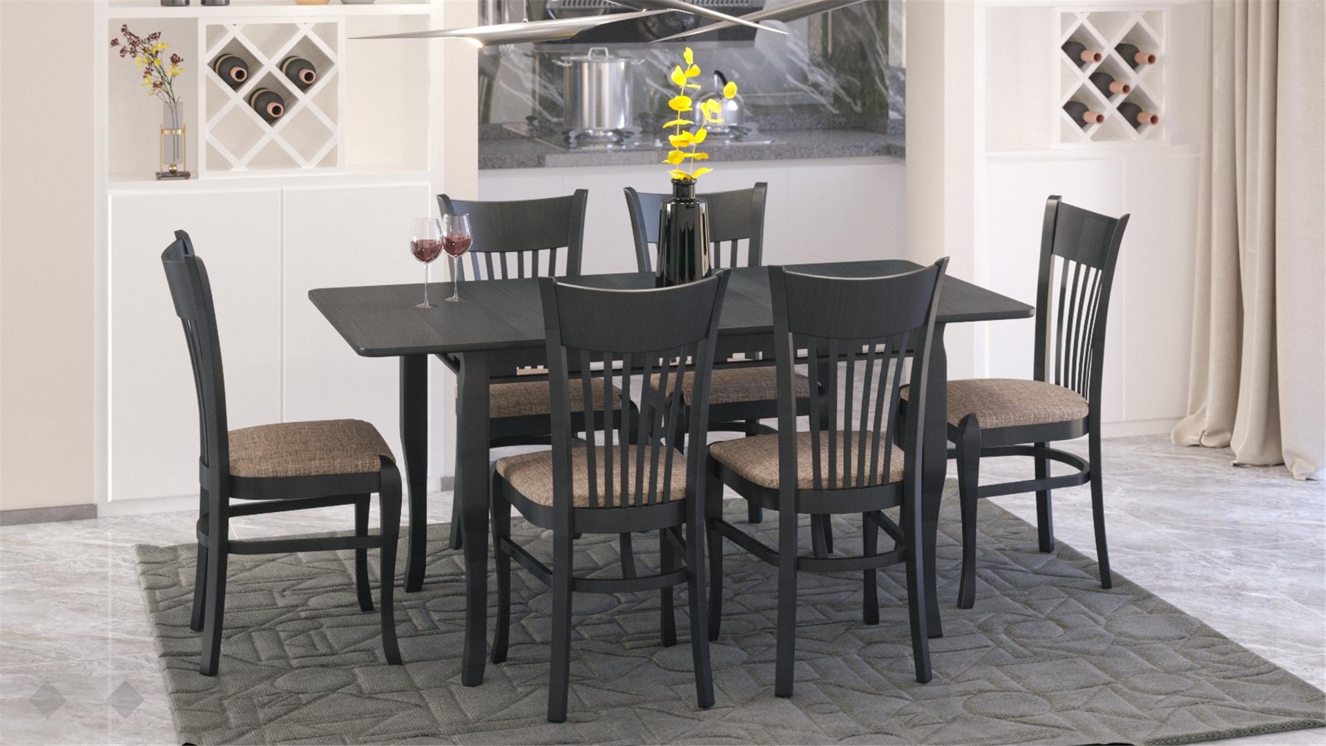 Столът е със здрава конструкция от естествена букова дървесина за устойчивост и стабилност, а лаковото покритие добавя елегантност. Седалката е проектирана с твърда основа, тапицирана с дунапрен за повече комфорт при седене и завършена със здрава текстилна дамаска, лесна за поддръжка.