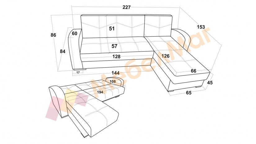 Разполага с два клик-клак механизма, един на седалната част и един на лежанката. С тяхна помощ и минимално усилие диванът се превръща за миг в легло с размери 108/194 см. Под седалната част и под лежанката има ракли за багаж - идеално място, да прибереш завивки, възглавници, дрехи и всичко друго, за които все не намираш място. Функционалното разделение на раклите ти дава възможност да организираш още по-прецизно вещите си.