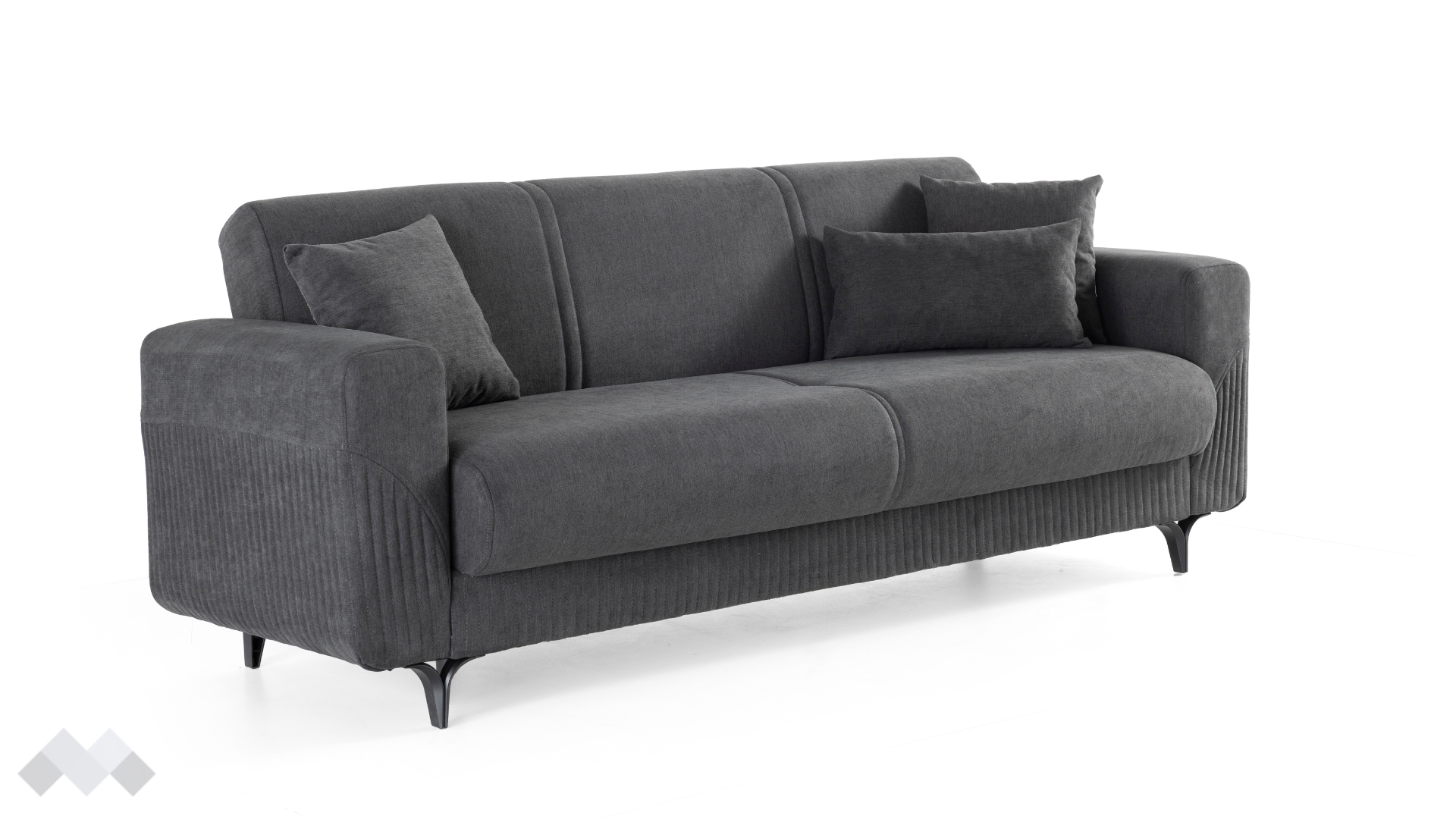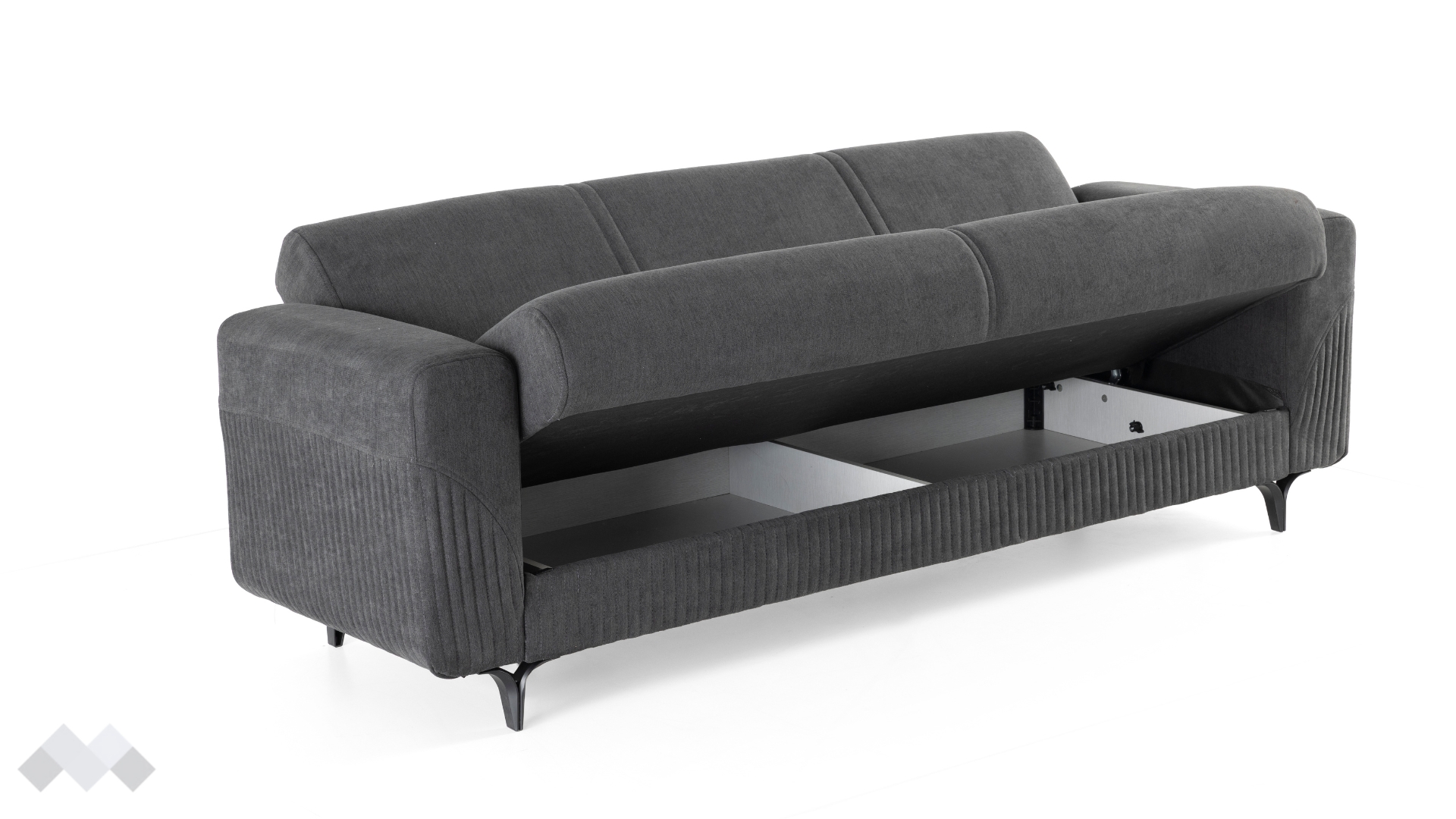 Създаден да впечатлява със своя външен вид, диван Атон е и функционален - с минимално усилие се превръща в комфортно и просторно легло - 104/182 см, посредством клик-клак механизъм. Диван Атон пристига в комплект с две възглавнички, които ще се превърнат в любимия ти помощник за следобедна дрямка. Под седалката ще откриеш още един плюс - ракла, в която можеш да съхраняваш вещите, които искаш да скриеш от погледа си, за да придадеш спретнат и подреден вид на стаята.