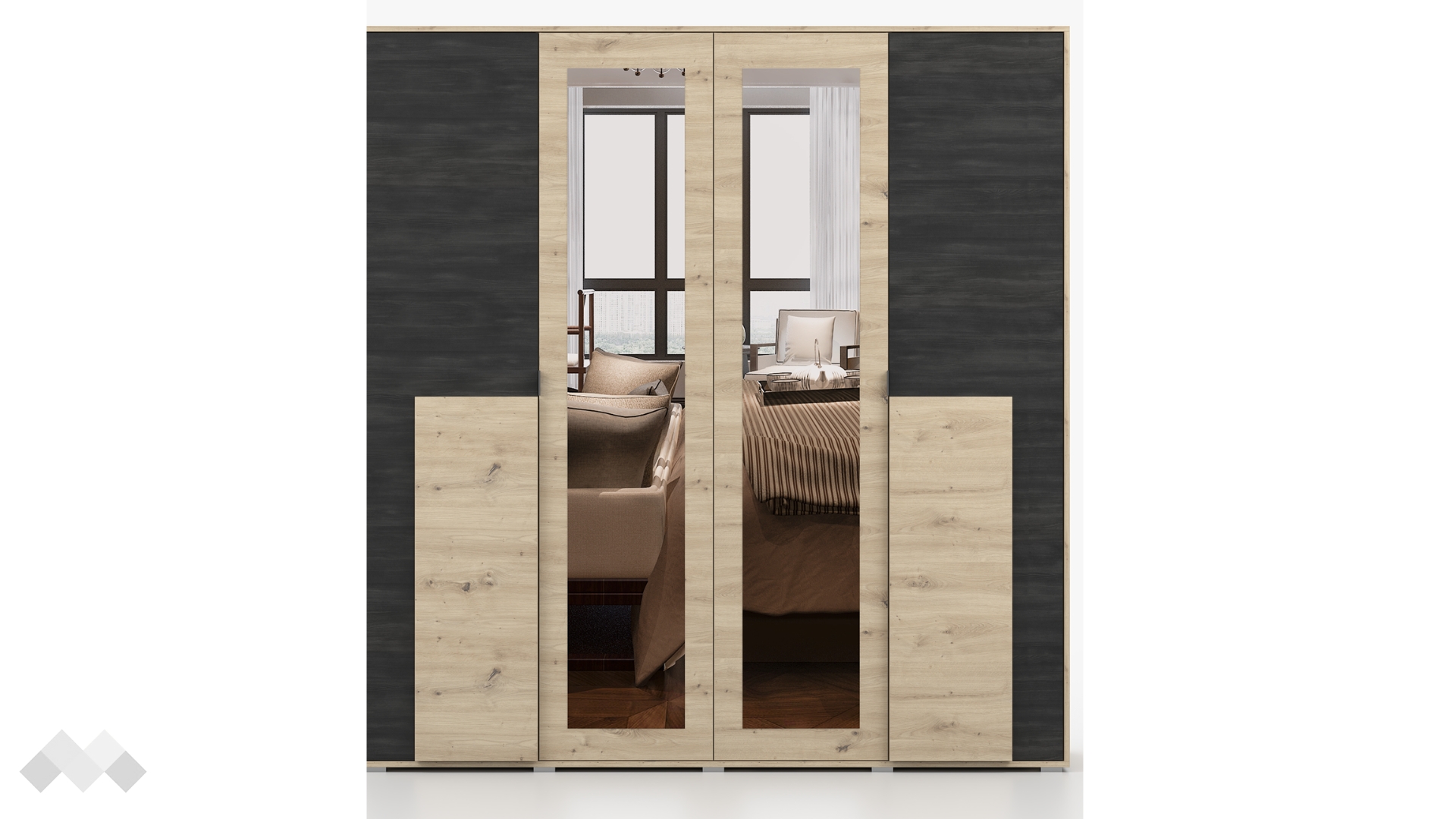 Гардеробът е четирикрилен, с 10 рафта и 2 лоста за закачалки. Има практично разпределение, което ще ти позволи да разпределиш дрехите и аксесоарите си по най-добрия начин.Можеш да използваш рафтовете за съхранение на току що изпраните и прилежно сгънати дрехи, а на лоста да закачиш всичко, което искаш да ти бъде под ръка. Дълбочината на гардероба е оптимално проектирана, за да предостави достатъчно пространство за съхранение.