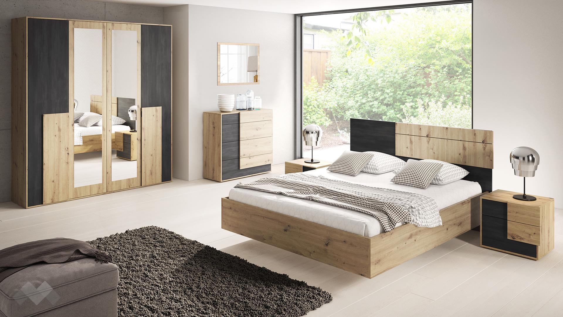 Искаш ли да си в крак с новите тенденции? Искаш ли пространството в което живееш да е с изключително модерен дизайн? Тогава се спри на Спален комплект Бафра в цвят дъб артисан и тъмен норвежки бор. Двата декора придават характер и изтънченост, и съчетава класически елементи с модерни акценти.