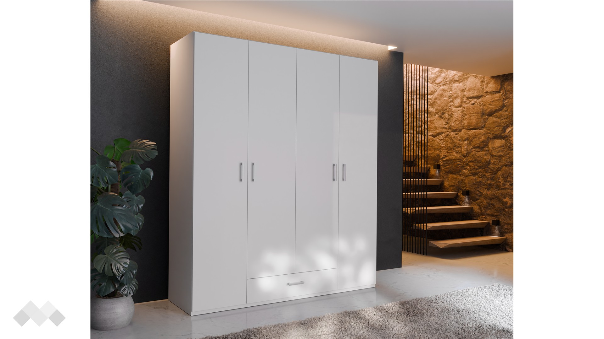 Ако държиш на стилните и практични мебели, четирикрилен гардероб Беатрис ще те впечатли. Практичен гардероб, който съчетава обема и разпределението на голям гардероб, а в същото време предлага удобството на чекмедже и рафтове, присъщи на скриновете.