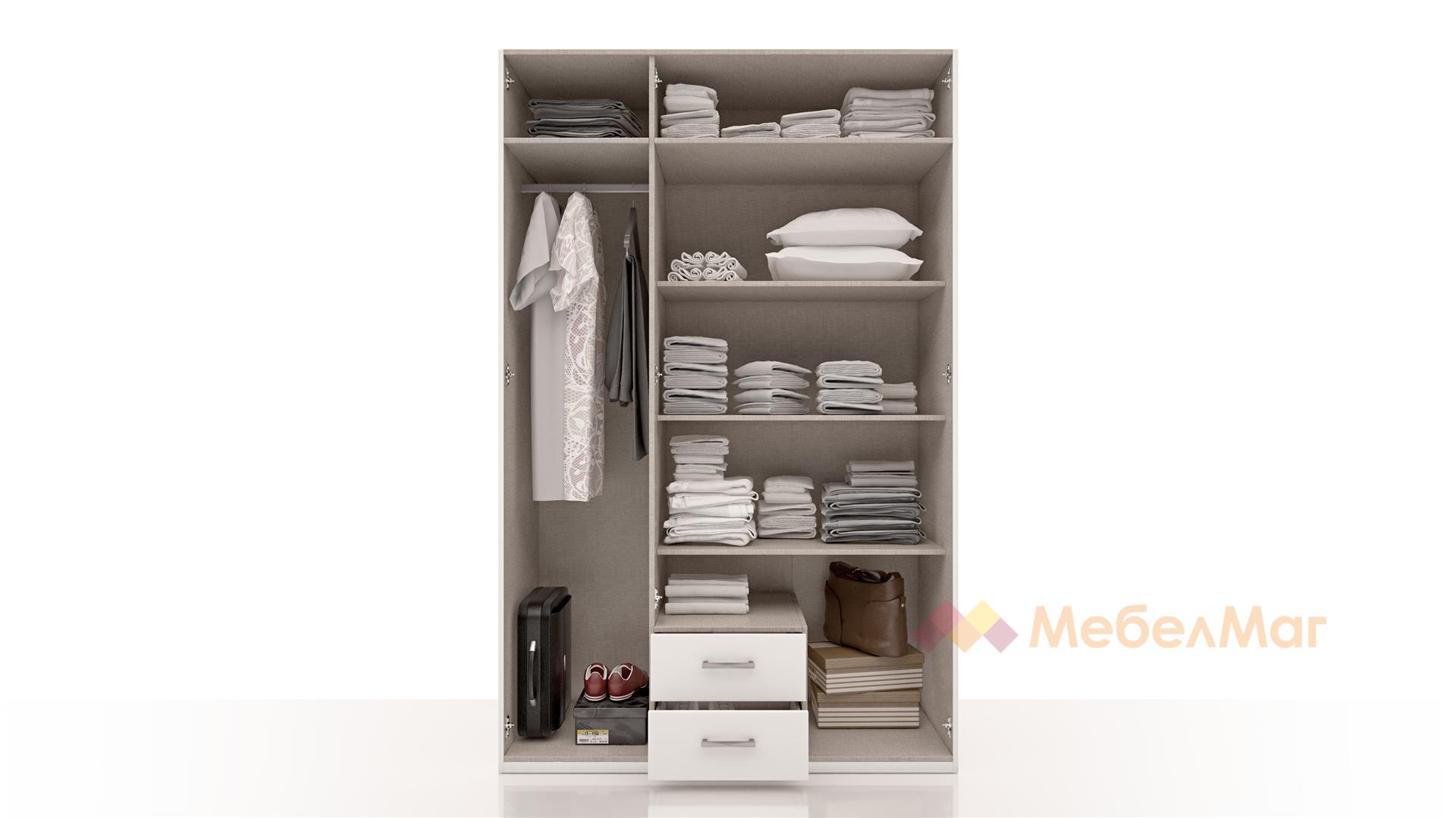 ⭐ Предимства: ✓ трикрилен ✓ 2 чекмеджета ✓ 5 рафта ✓ 2 лоста за закачалки ✓ практично разпределение ✓ качествена изработка ✓ 16 мм ПДЧ