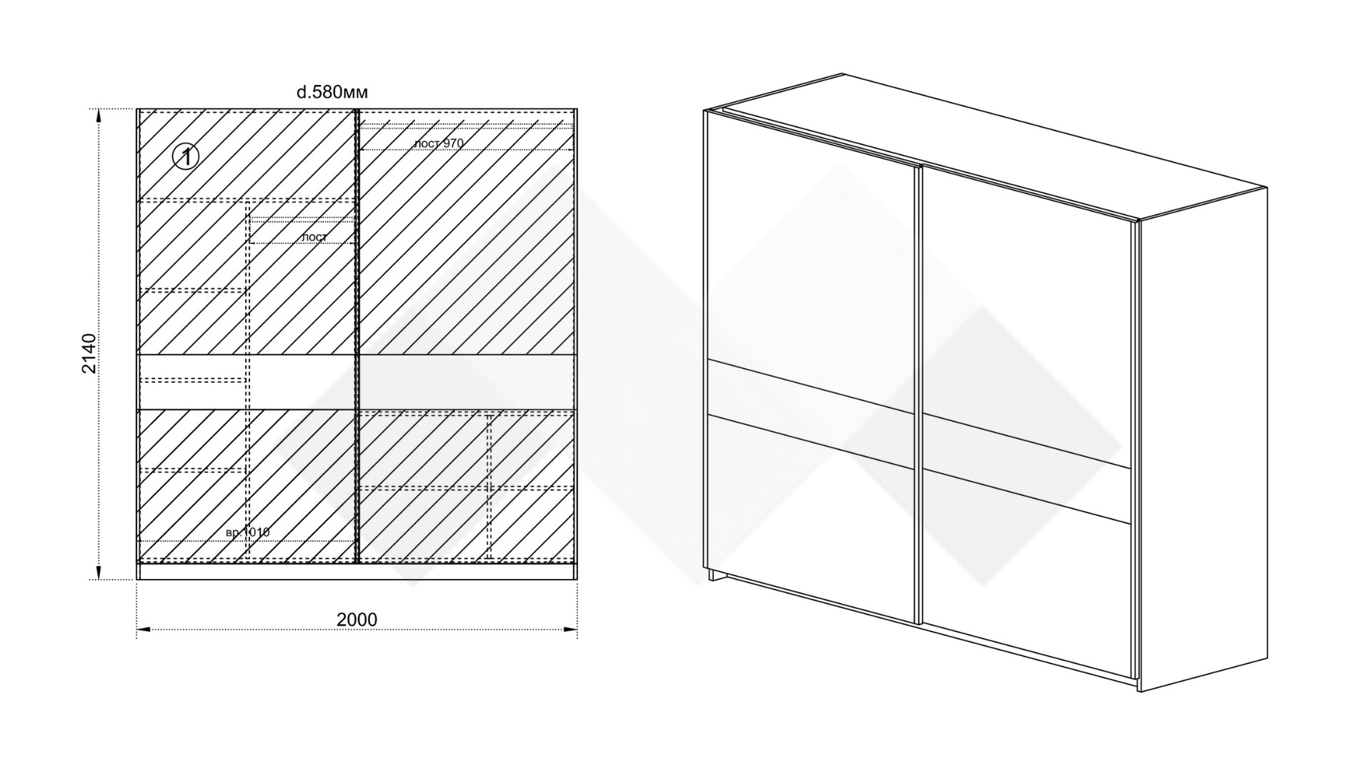 ⭐ Предимства: ✓ плъзгащи врати ✓ 7 рафта ✓ 2 лоста за закачалки ✓ модерен декор ✓ практично разпределение ✓ качествена изработка ✓ 16 мм ПДЧ ✓ 16 мм МДФ