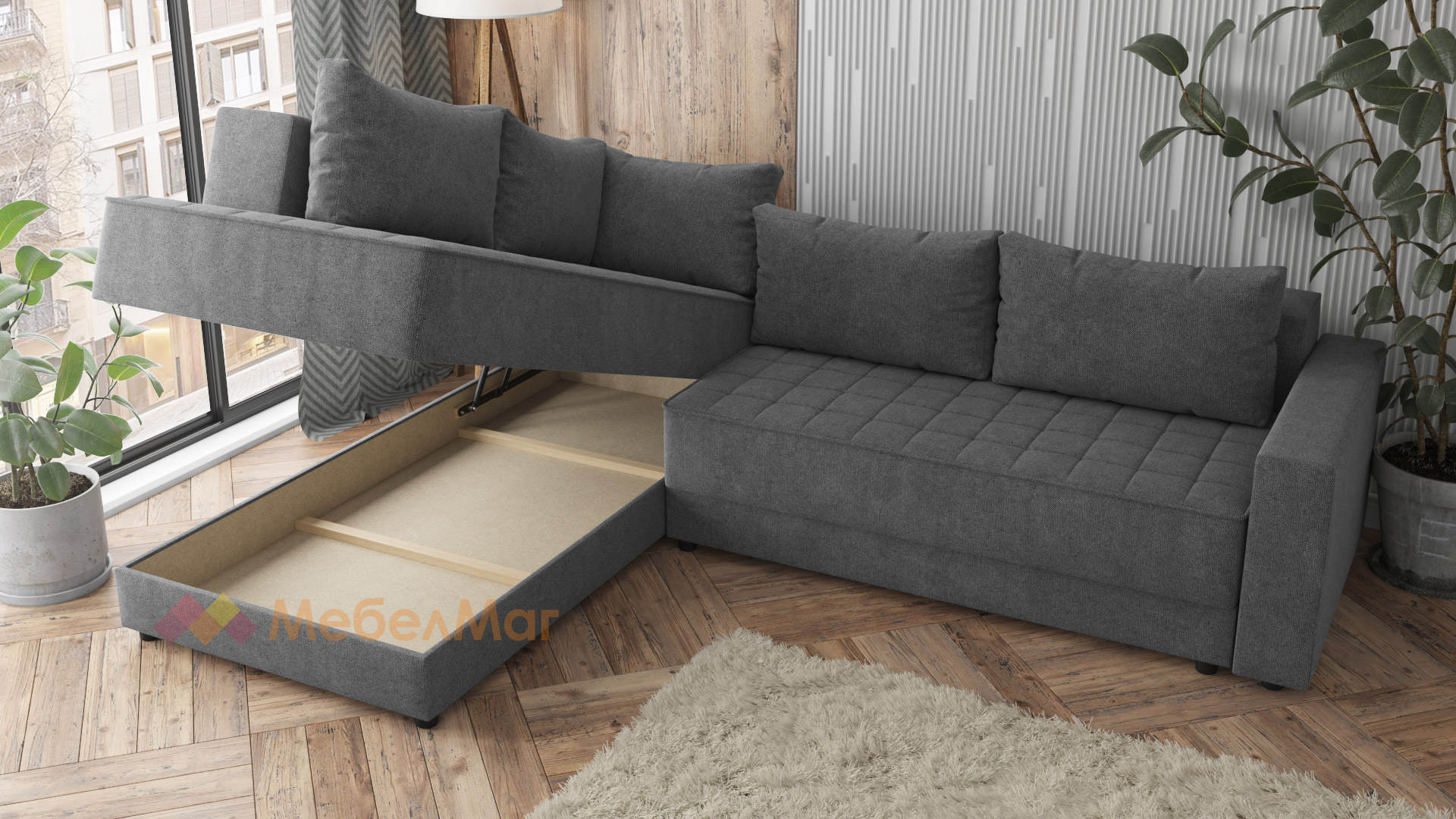 Бързо и лесно, с минимални усилия, ъглов диван Били се превръща в голямо легло с размери 219/140 см, посредством падащ гръб. Под лежанката и седалната част на дивана има две просторни ракли за багаж - идеално място да прибереш завивки, възглавници и всичко друго, за което все не намираш място. Калъфите на облегалните възглавници се свалят, за да се почистват по-лесно.