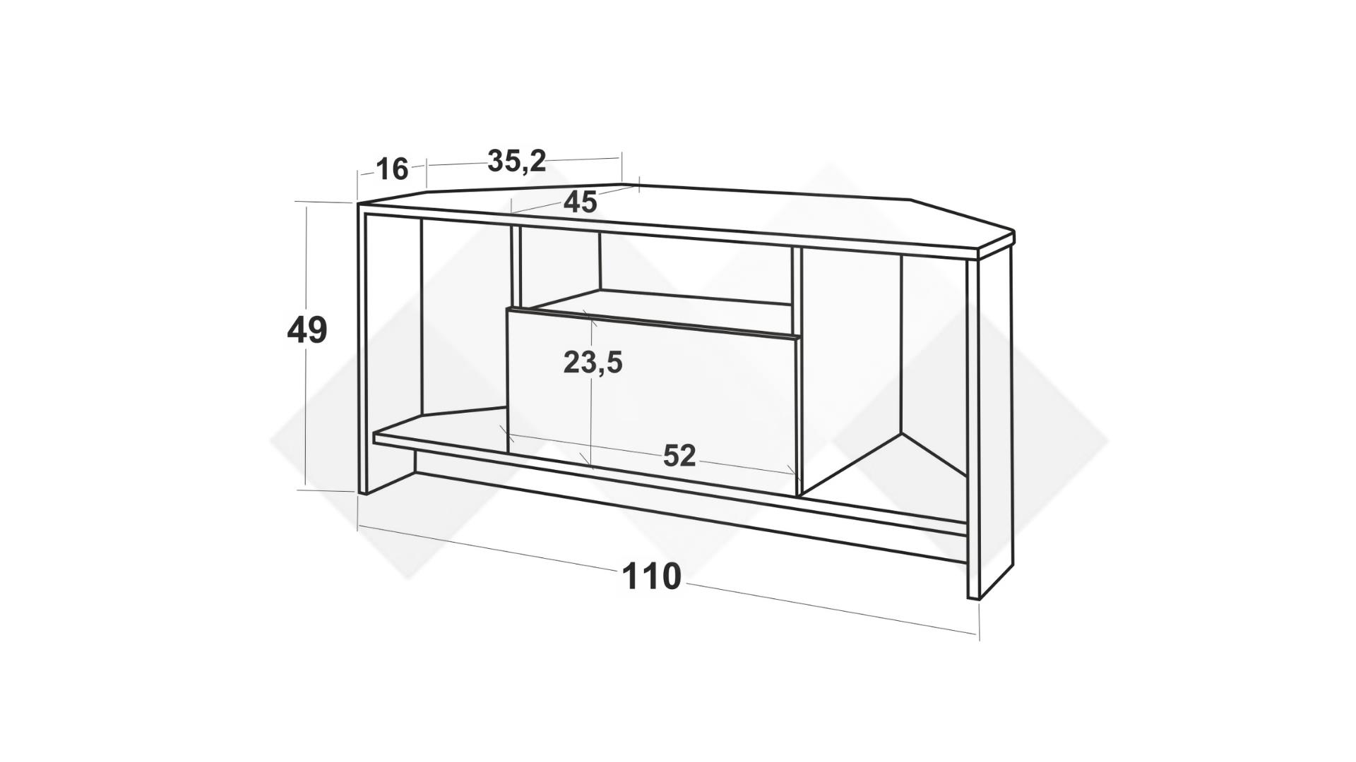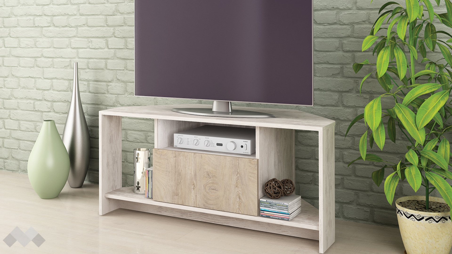 На твое разположение са два открити рафта, отворена ниша, затворен шкаф и удобен плот, на който можеш да поставиш своя телевизор. Отворената ниша под плота ти предоставя достатъчно пространство, където да поставиш цялата си съпътстваща техника като ТВ приемници, DVD плейъри и други. Рафтовете са идеални за подреждане на дискове, книги, сувенири, фотографии или стилни декорации. В затворения шкаф можеш да организираш вещите, които искаш да останат скрити, или техника, която не използваш толкова често, но в същото време ще ти е винаги под ръка.
