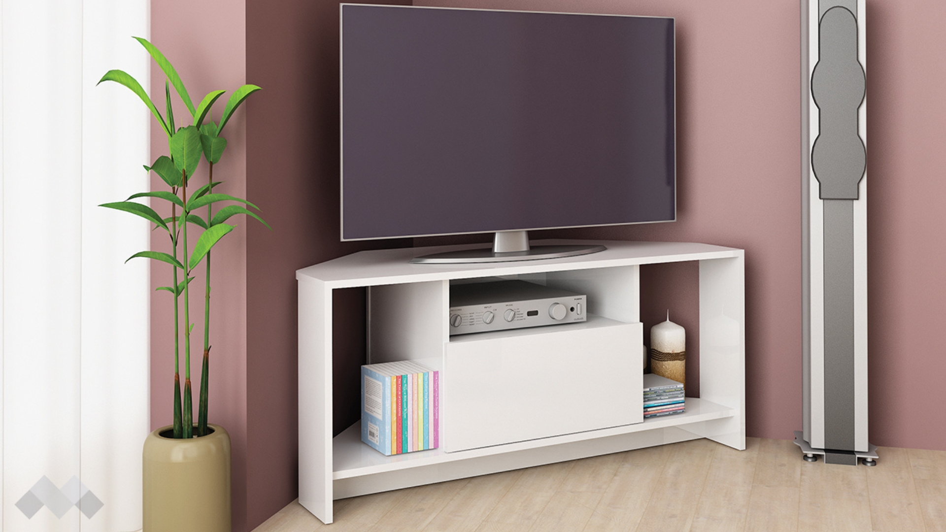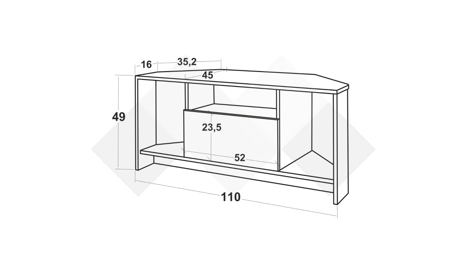 На твое разположение са два открити рафта, отворена ниша, затворен шкаф и удобен плот, на който можеш да поставиш своя телевизор. Отворената ниша под плота ти предоставя достатъчно пространство, където да поставиш цялата си съпътстваща техника като ТВ приемници, DVD плейъри и други. Рафтовете са идеални за подреждане на дискове, книги, сувенири, фотографии или стилни декорации. В затворения шкаф можеш да организираш вещите, които искаш да останат скрити, или техника, която не използваш толкова често, но в същото време ще ти е винаги под ръка.