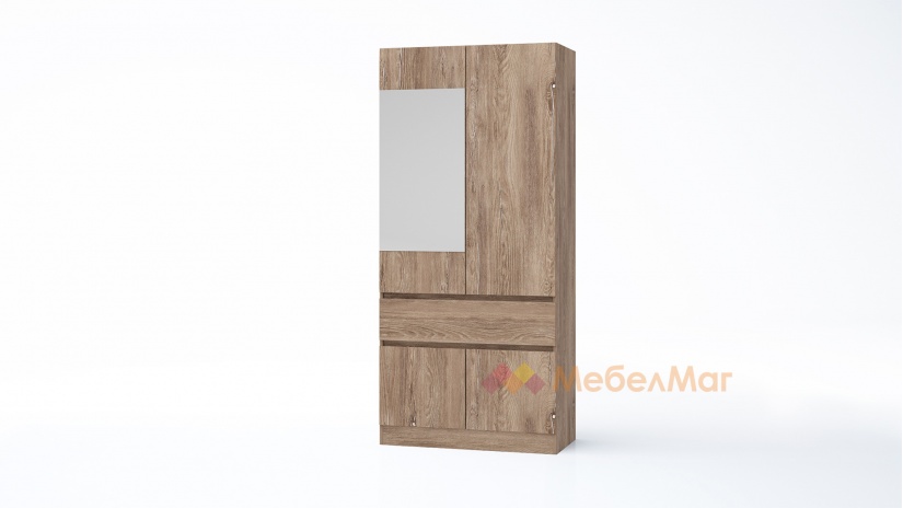 ⭐ Предимства: ✓ двукрилен ✓ чекмедже ✓ шкаф ✓ лост за закачалки ✓ огледало ✓ стилен декор ✓ механизъм за плавно затваряне ✓ качествена изработка ✓ 16 мм ПДЧ