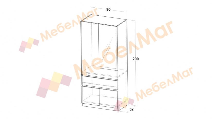 ✓ двукрилен ✓ чекмедже ✓ шкаф ✓ лост за закачалки ✓ огледало ✓ стилен декор ✓ механизъм за плавно затваряне ✓ качествена изработка