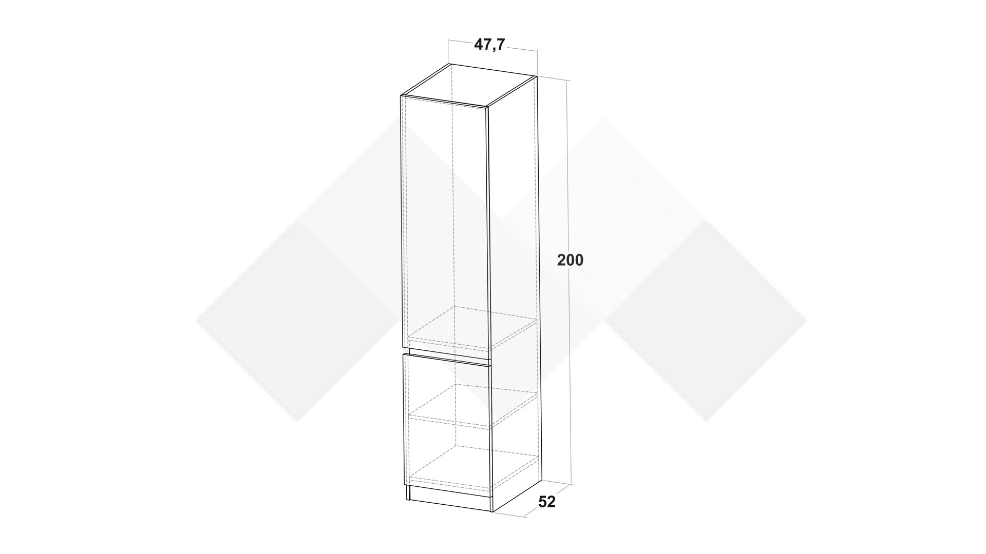 Д: 47.7 см Ш: 52 см В: 200 см
