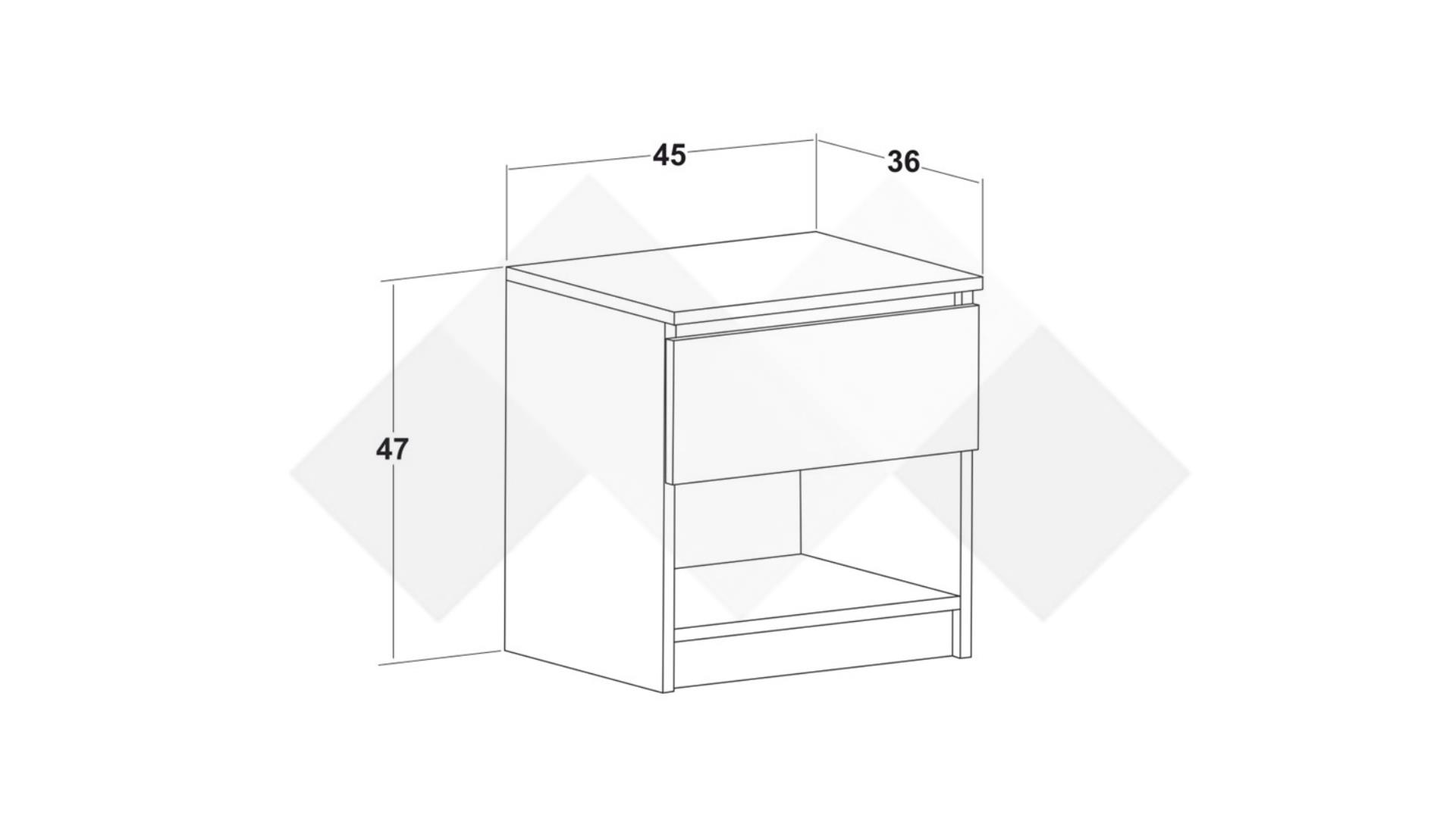 Нощен шкаф Борей е идеален за поставяне до леглото, осигурявайки лесен достъп до всичко необходимо през нощта или рано сутрин. Шкафът разполага с рафт и чекмедже, които предлагат удобно пространство за съхранение на книги, списания или други лични вещи, които искаш да бъдат на една ръка разстояние.