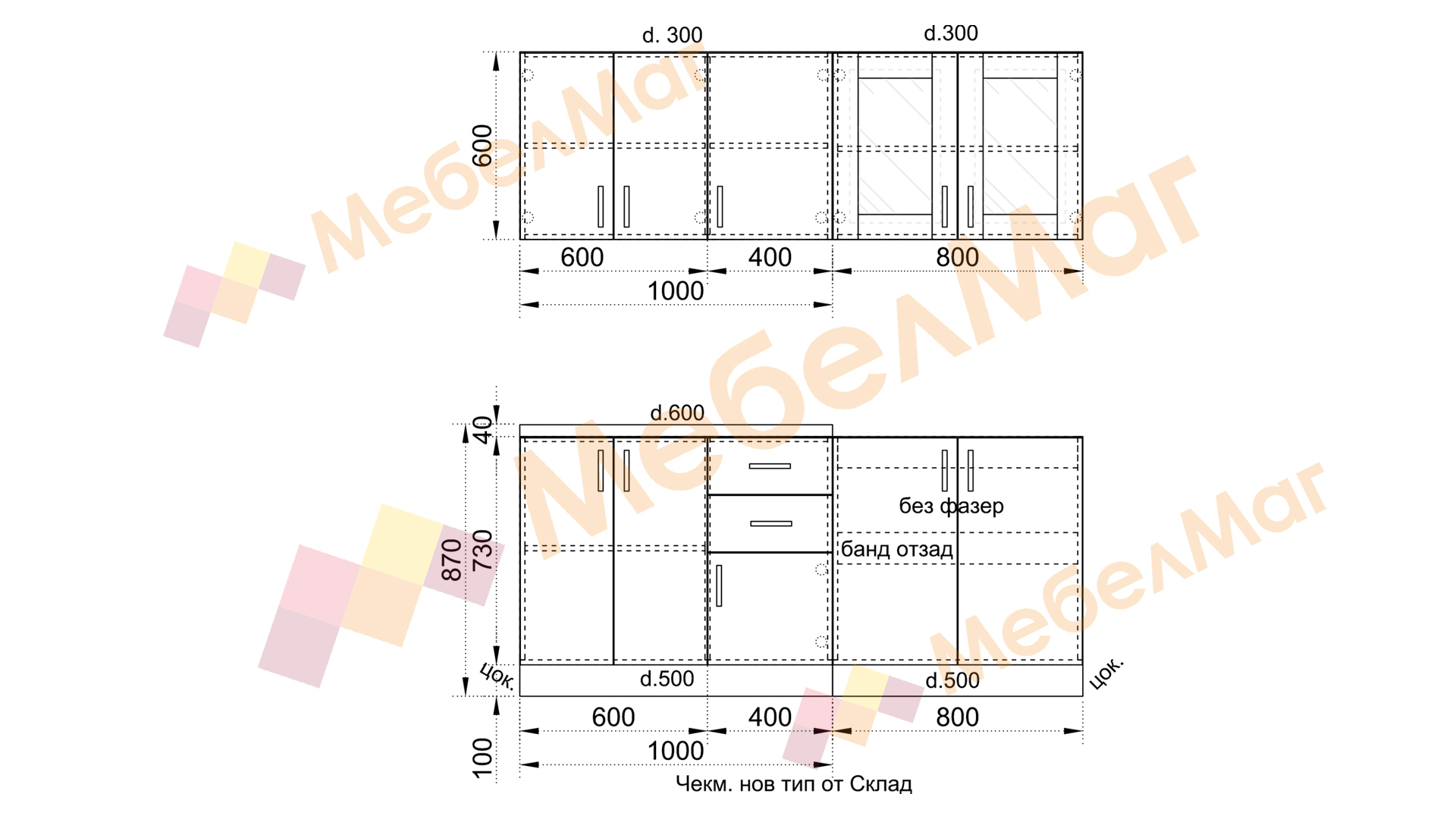 Долен ред: Д: 180 см Ш: 50 см В: 86 см