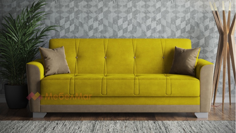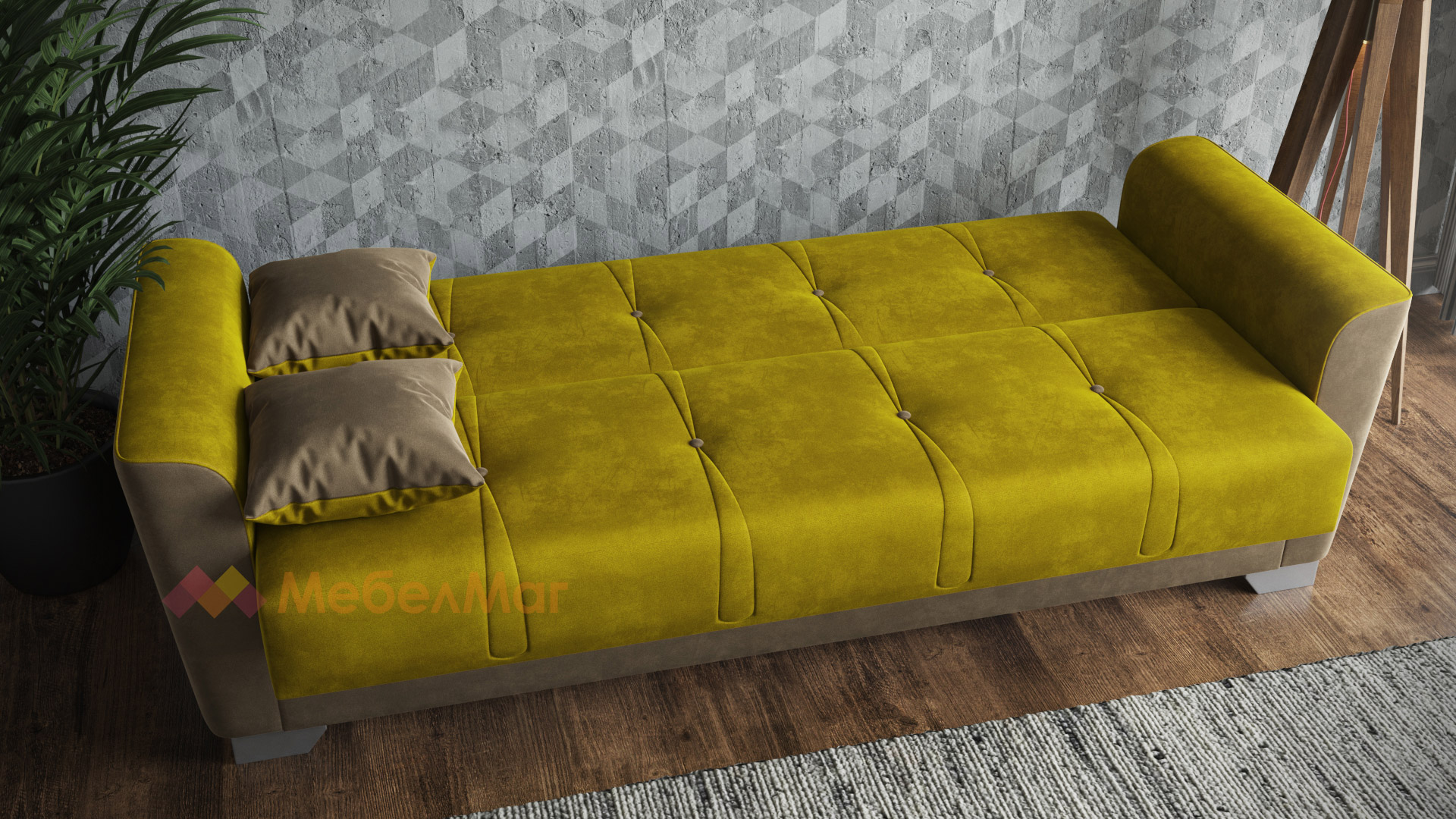 Диванът има здрава конструкция с бонел пружина, отличаваща се с устойчивост за дълъг период на употреба. Моделът се предлага във внимателно подбрани цветови комбинации, които със сигурност ще направят интериора ти стилен и модерен.