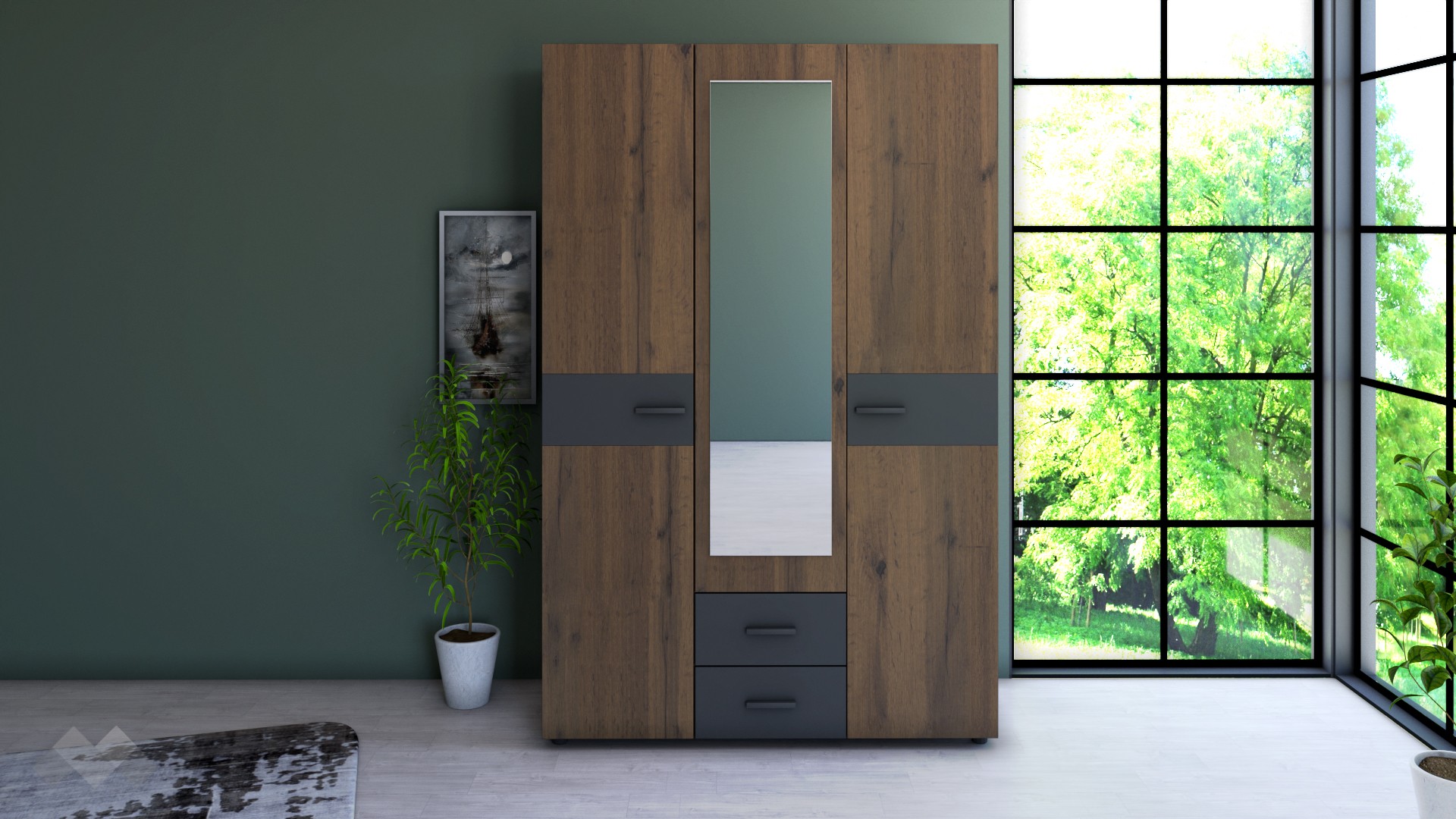 ⭐ Предимства: ✓ гардероб с огледало и чекмеджета ✓ спалня ✓ скрин ✓ качествена изработка ✓ 16 мм ПДЧ