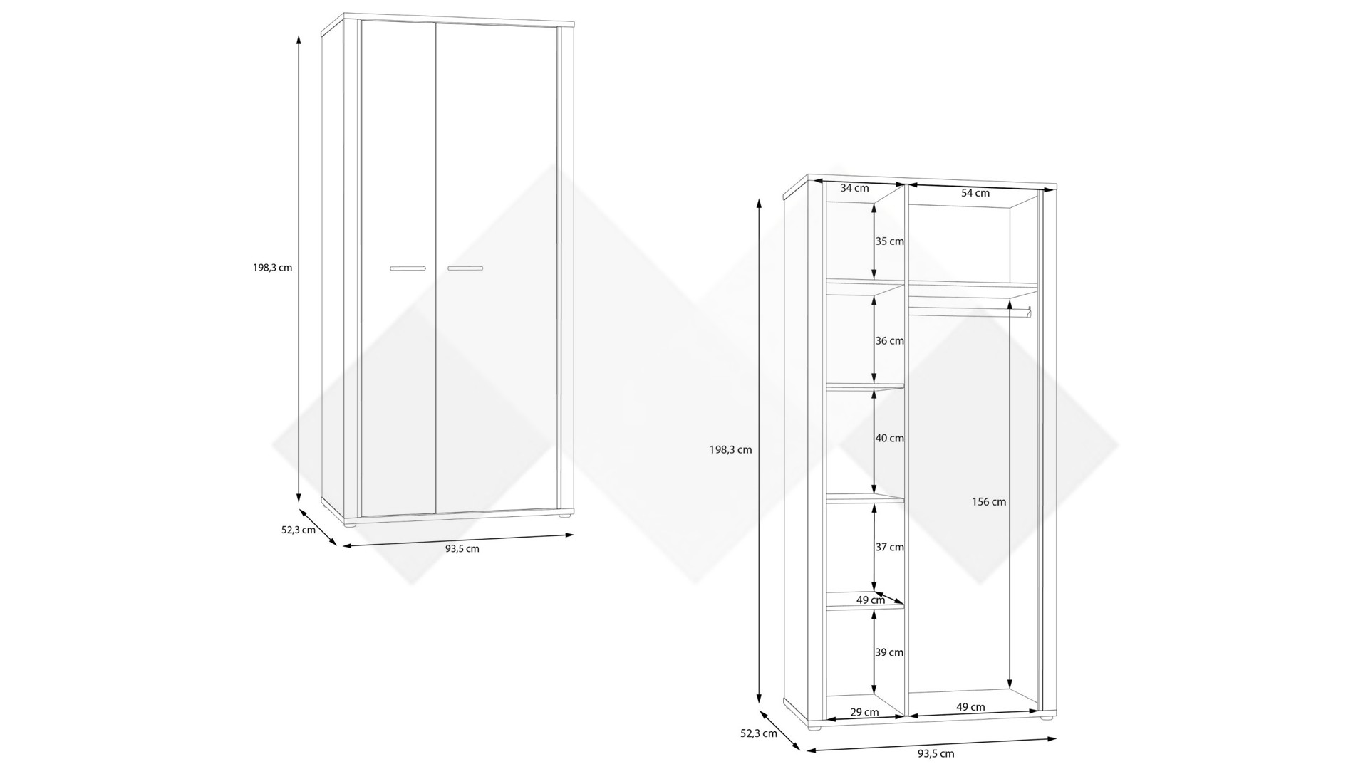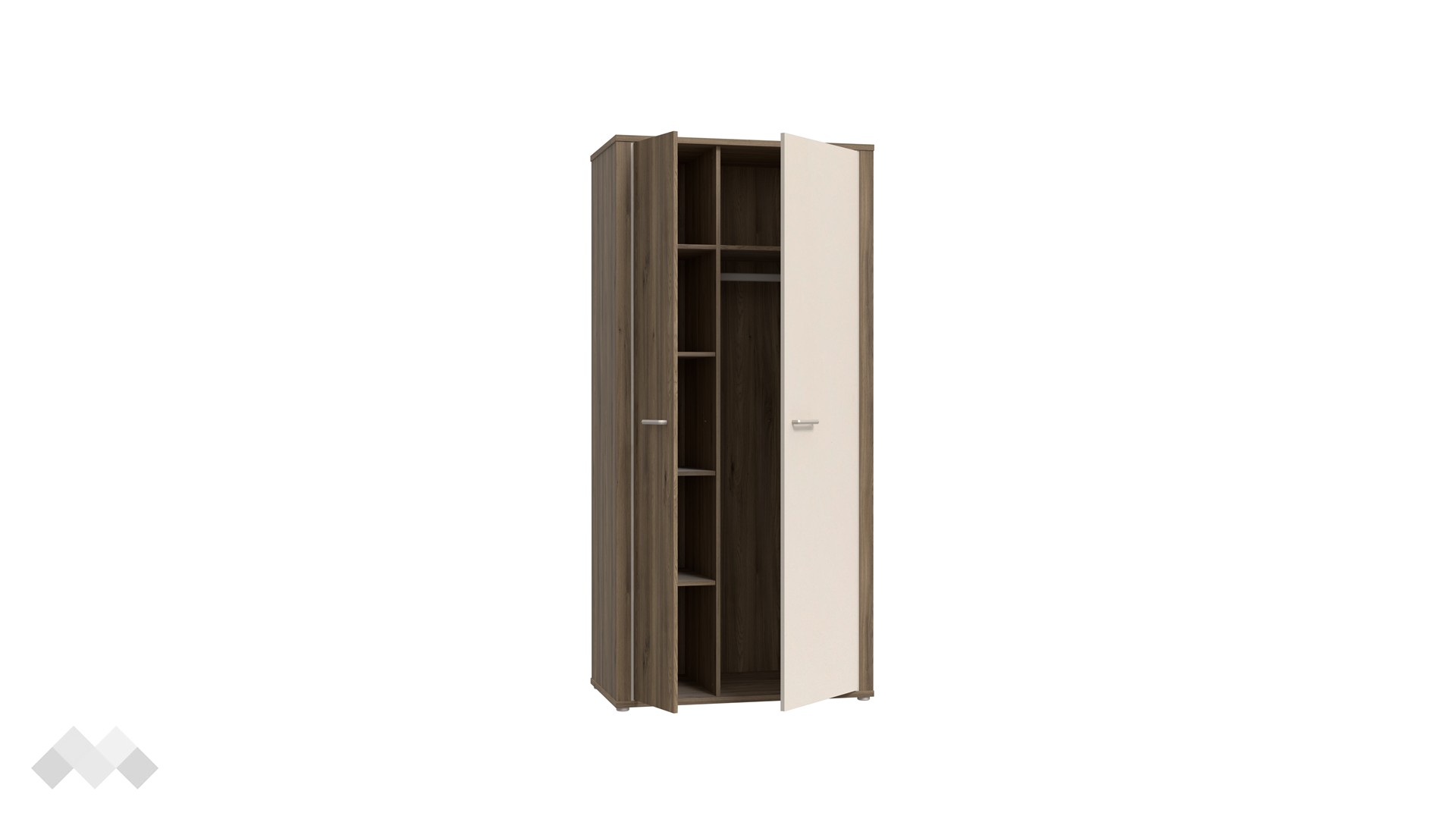 Двукрилен гардероб Дейлос е стилен и практичен избор за твоя дом – с функционално вътрешно разпределение, което осигурява максимално удобство и пространство за съхранение на дрехи и аксесоари. Гардеробът впечатлява със своя изчистен дизайн и ще се впише чудесно във всякакви интериорни стилове.