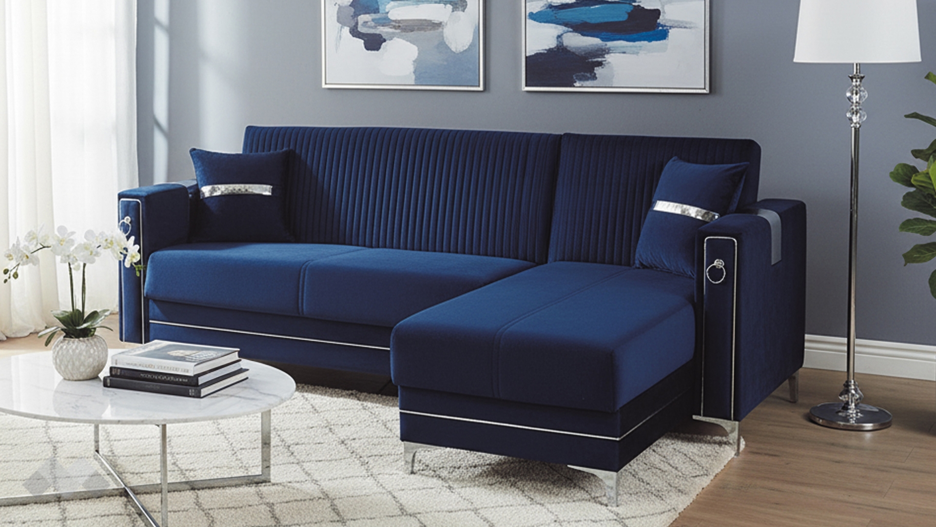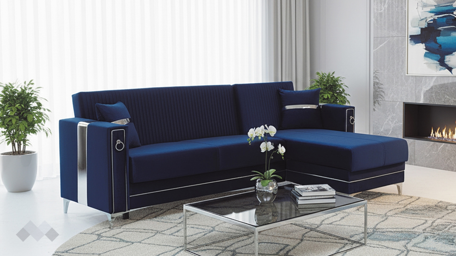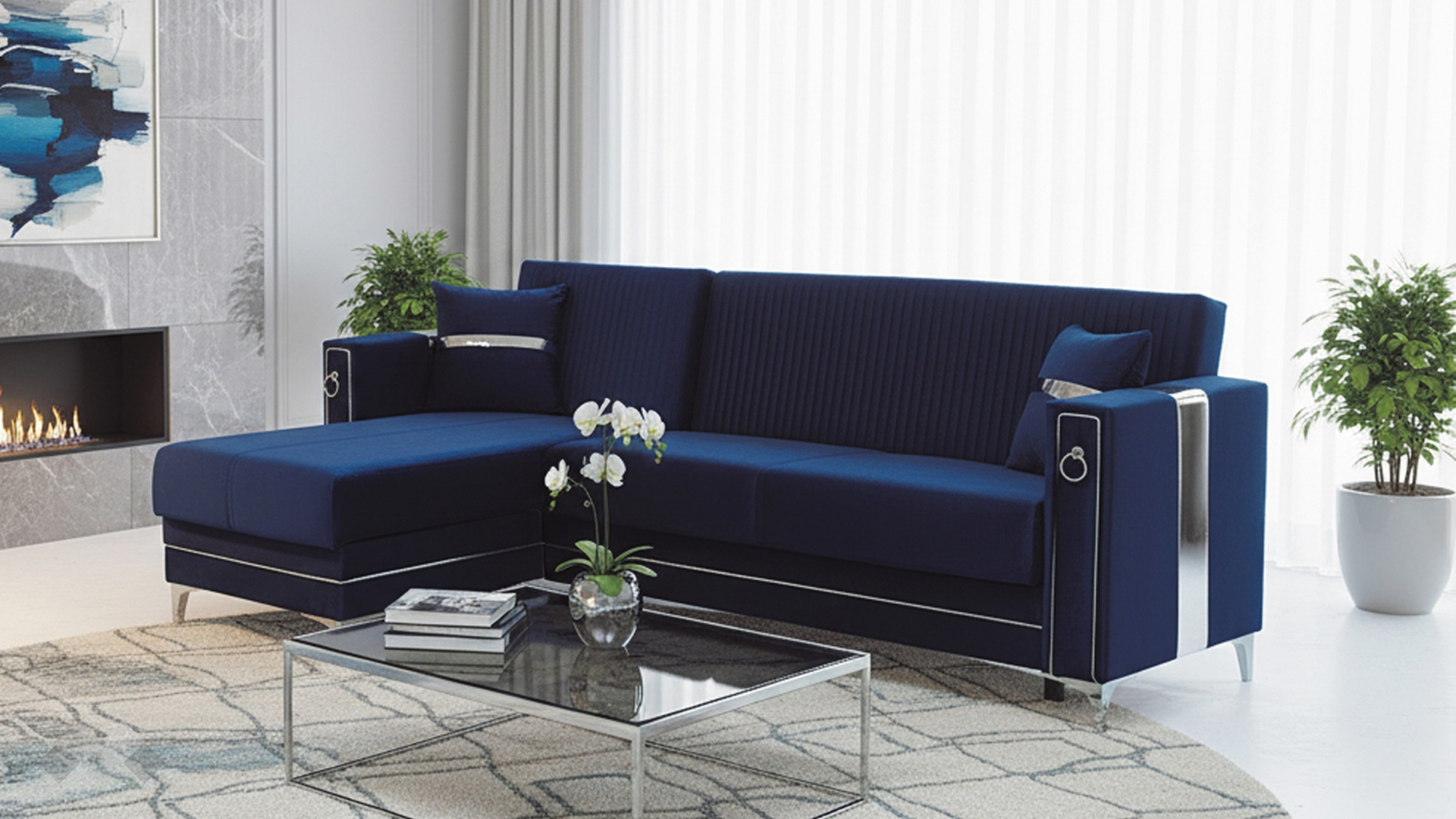 Изискан и елегантен, ъглов диван Дестини, впечатлява с изключително внимание към детайла. Моделът комбинира наситени цветове с изящни сребристи акценти, които му придават исискан стил и създават усещане за класa и елегантност.