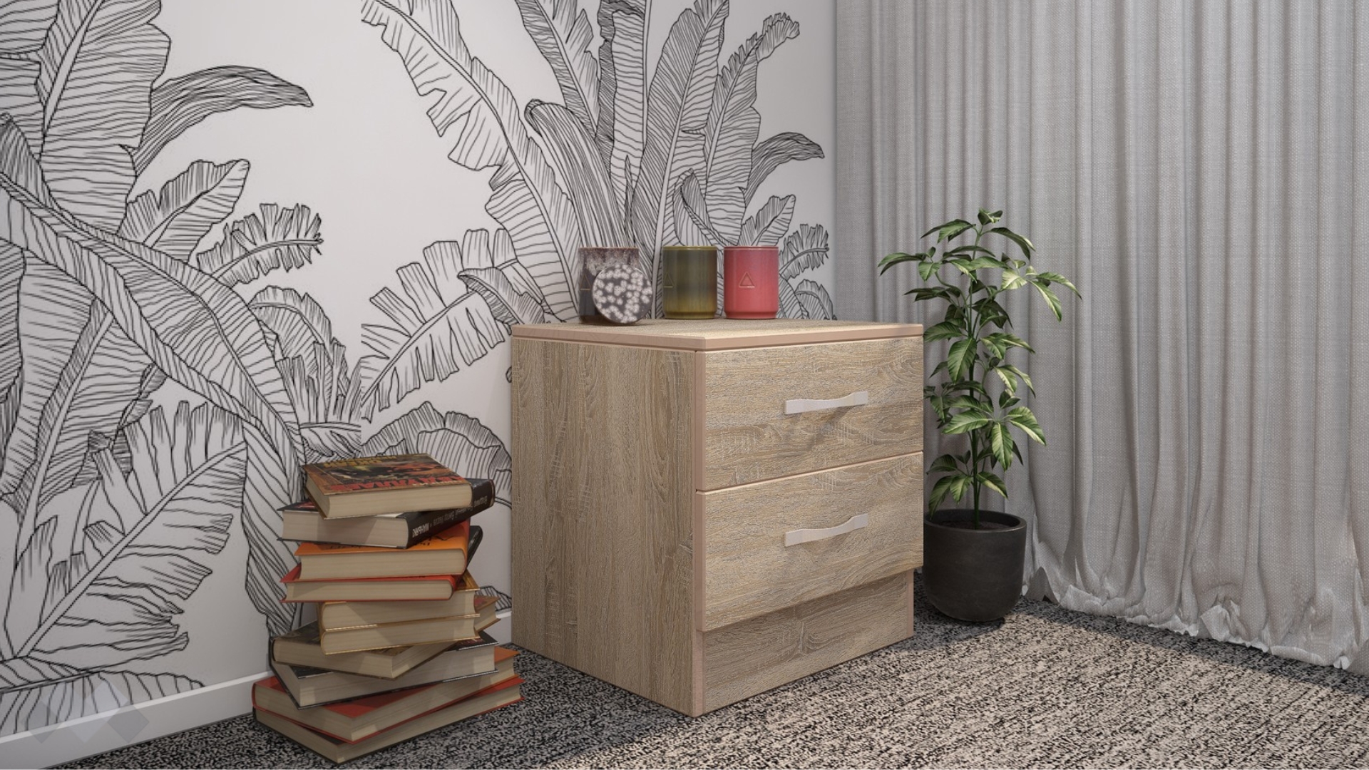 ⭐ Предимства: ✓ 2 чекмеджета ✓ компактен и практичен ✓ модерен декор ✓ качествена изработка ✓ 16 мм ПДЧ
