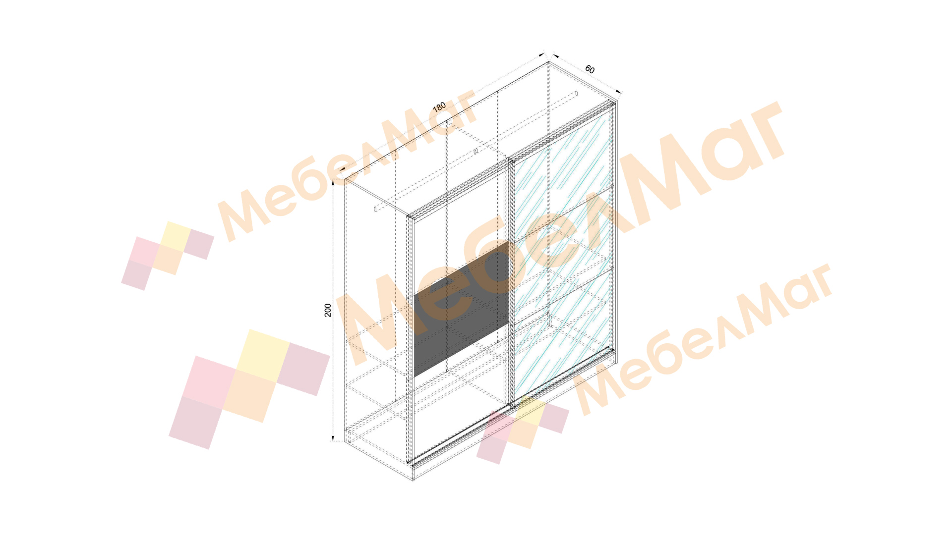 Гардероб Димана е с плъзгащи врати, практично разпределен и изцяло отговарящ на съвременните стандарти за съхранение на дрехи. Той разполага с четири широки рафта и два лоста за закачалки. Ще ти допадне и огледалото, разположено на вратата – благодарение на него стаята ще бъде по-осветена и ще изглежда визуално по-голяма. Плъзгащите врати правят гардероба подходящ дори за най-малките спални, тъй като за отварянето им не се нуждаеш от допълнително пространство. В същото време, дълбочината на гардероба позволява да съхраняваш вътре и по-обемни вещи.