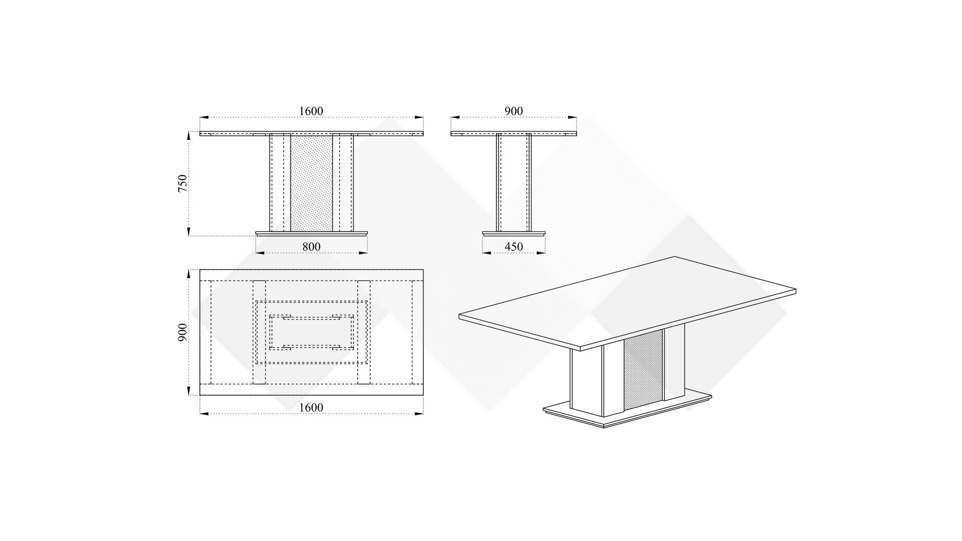 Качествената изработка и модерният дизайн са основните предимства на масата. Изработена е от 32 мм ПДЧ за плота и 16 мм ПДЧ, гаранция за здравина, стабилност и дълъг период на използване.