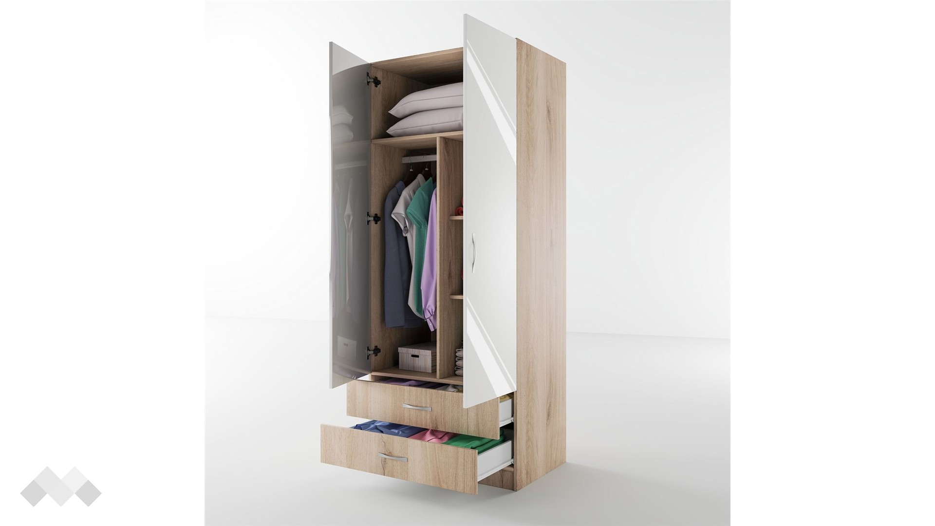 Благодарение на практичното разпределение на вътрешното пространство, с лекота ще можеш да организираш и съхраняваш дрехите си, като същевременно ще имаш бърз достъп до всеки тоалет. В широките две чекмеджета е удобно да съхраняваш бельо, чорапи или други аксесоари. Комбинацията от рафтове и лост за закачалки ти дава възможност да организираш дрехите си по най-удобния за теб начин.
