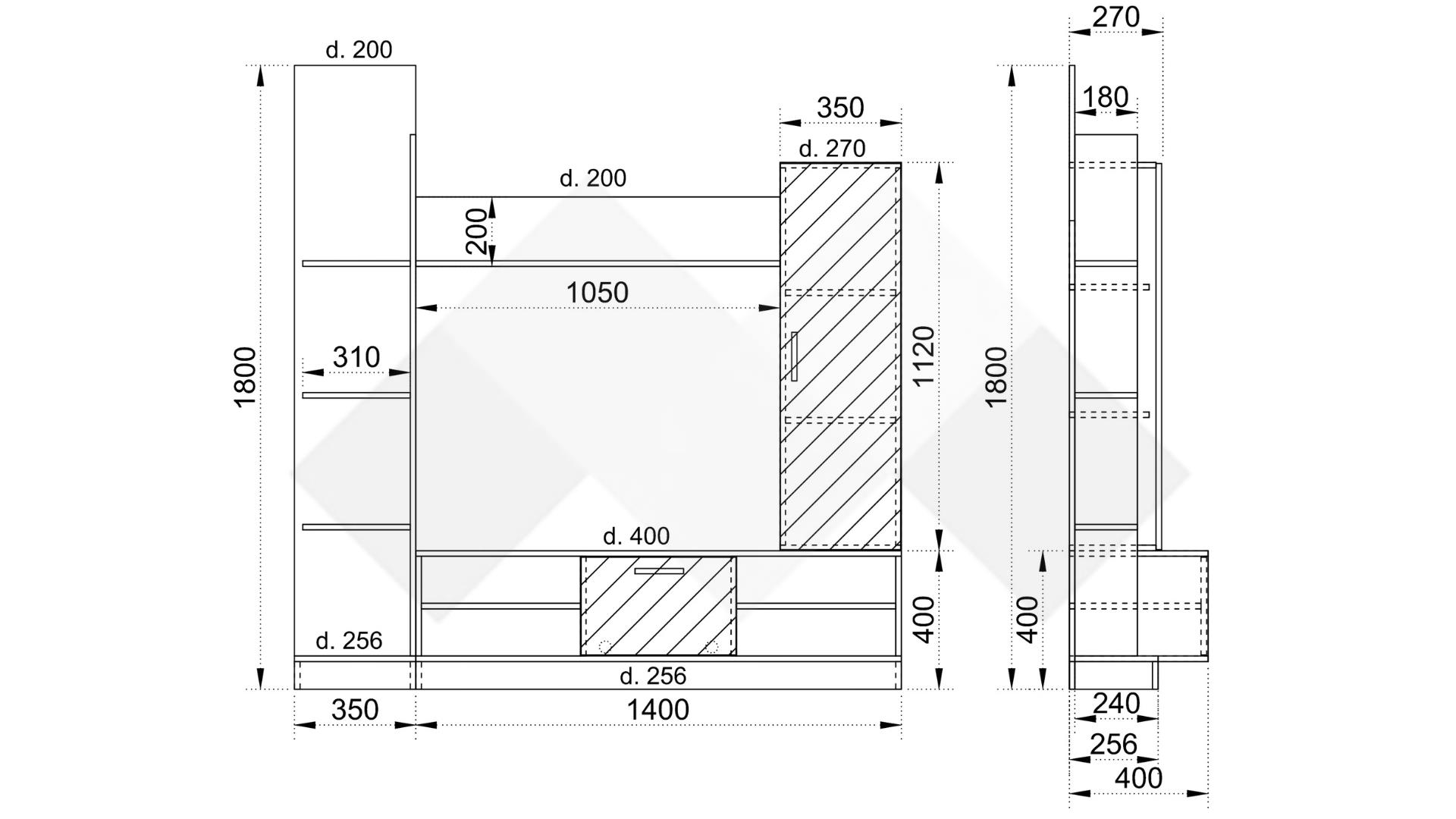 ⭐ Предимства: ✓ модерен дизайн ✓ ТВ шкаф ✓ висок шкаф ✓ етажерка ✓ отворени рафтове ✓ качествена изработка ✓ 16 мм ПДЧ