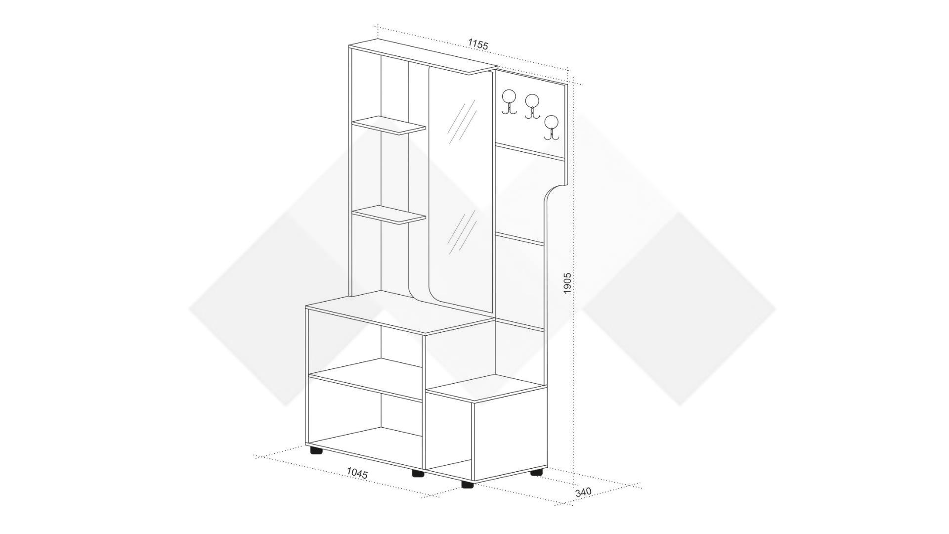 На паното са монтирани три закачалки за якета, палта, шалове или шапки. Дизайнът на закачалките е направен така, че горната им част е с лека извивка. Под тях е разположен отворен шкаф, където може да оставиш любимите обувки, който искаш да са винаги под ръка в забързаното ежедневие. А плотът автоматично се превръща в място за твоите чанти или да поседнеш докато се обуваш.