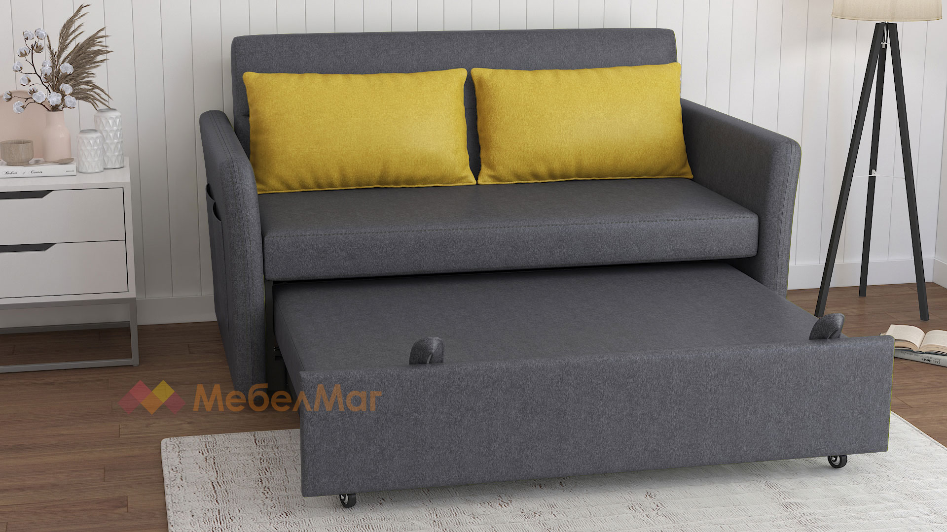 С едно издърпване активираш функцията сън и диванчето се превръща в легло за двама. Механизмът е изключително лесен за ползване благодарение на ламелната рамка на колелца и вече разполагаш с площ за сън с размери 118/180 см.