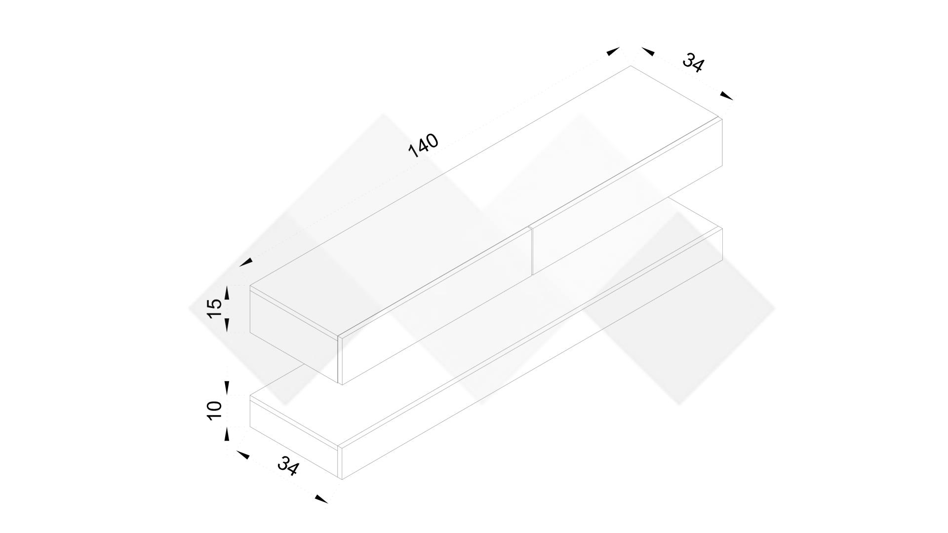 Долен модул: Д: 140 см Ш: 34 см В: 10 см