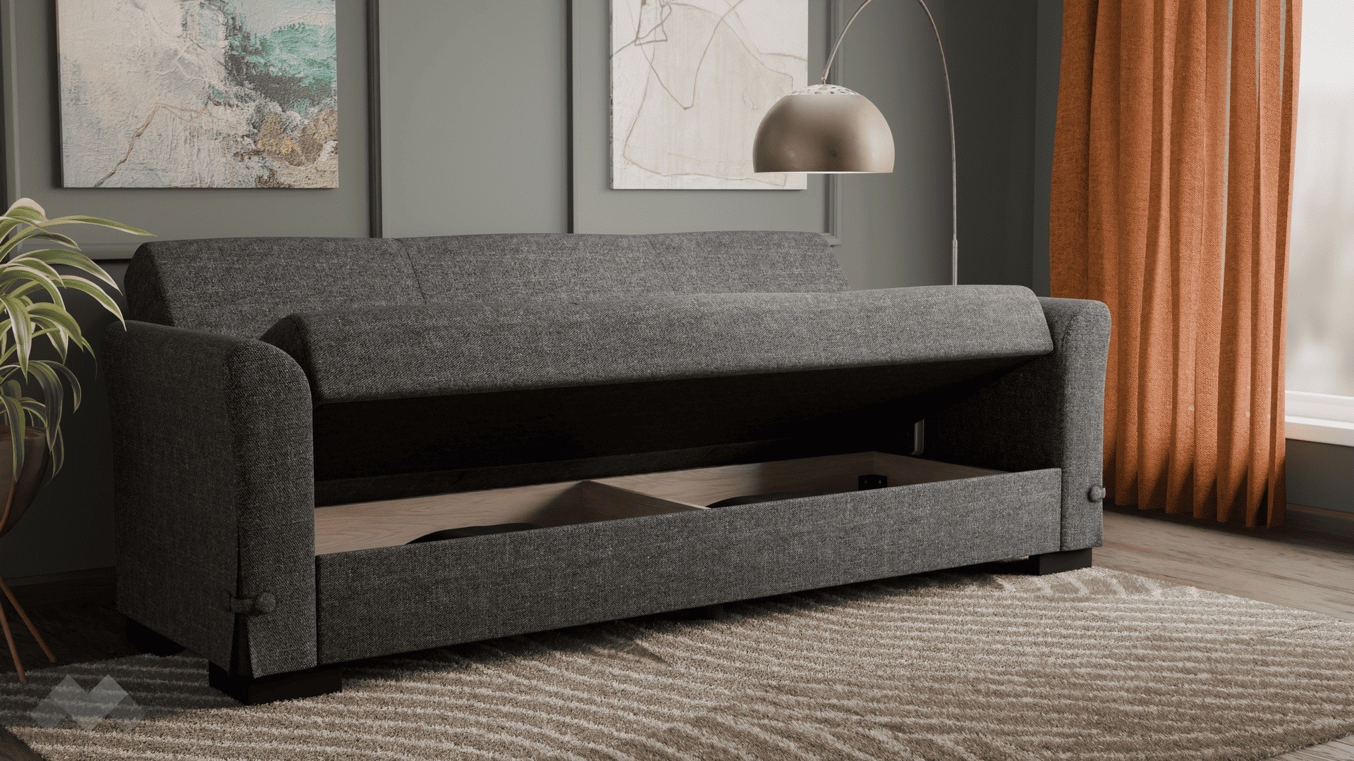 Благодарение на клик-клак механизма, диванът се трансформира бързо и лесно в удобно легло с размери 180/103 см. Само с едно движение можеш да го разгънеш или прибереш, което го прави изключително удобен за ежедневна употреба или за настаняване на гости. Под седалната част ще откриеш още един практичен плюс – удобна ракла, в която можеш да съхраняваш завивки, възглавници и други вещи. Дамаската е приятна на допир, изработена от здрав и устойчив текстил.