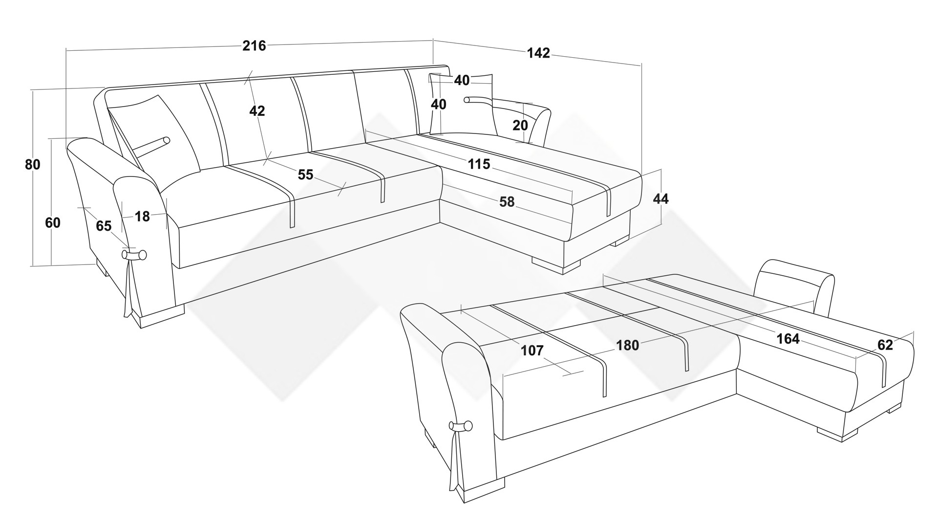 Конструкцията на ъгловия диван е изработена от комбинация от масивна дървесина, ПДЧ, метал и Бонел пружина, която гарантира дълготрайна стабилност и издръжливост на модела.