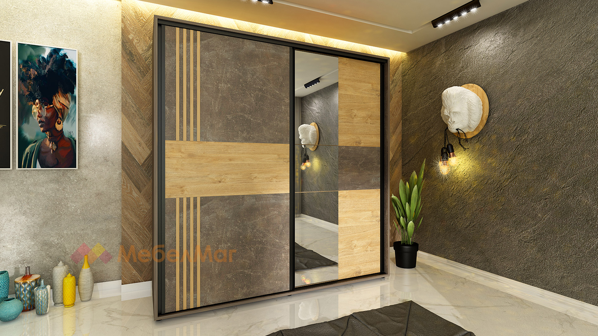 Гардеробът е практично разпределен, с плъзгащи врати, изцяло отговарящ на съвременните стандарти за съхранение на дрехи. От дясната му страна ще откриеш три широки рафта, а от лявата – два лоста за закачалки. Ще ти хареса голямото огледало, разположено на една от вратите, което ще ти бъде неотменен помощник в избора на тоалет всеки ден.