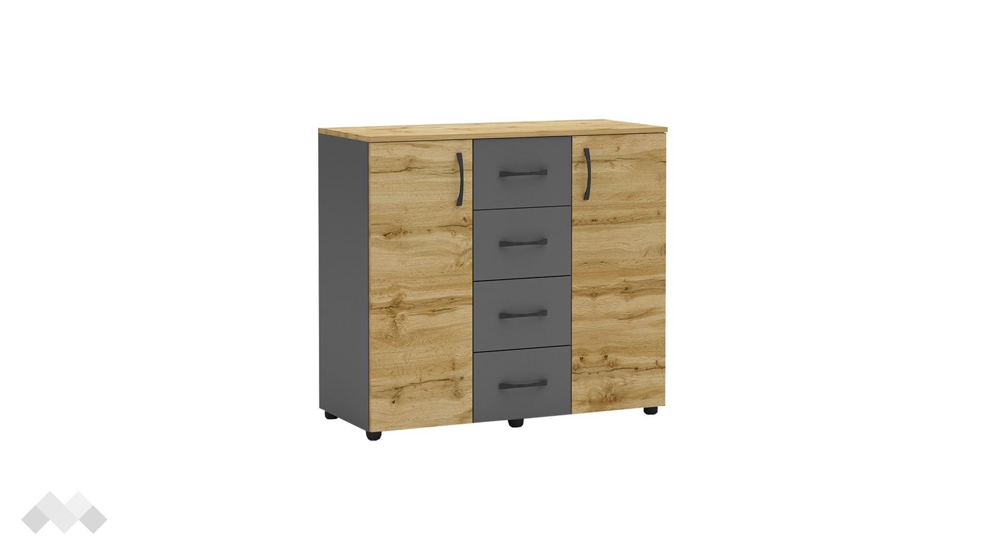 ⭐ Предимства: ✓ 4 чекмеджета ✓ 2 затворени шкафа ✓ компактен и практичен ✓ механизъм за плавно затваряне ✓ модерен декор ✓ качествена изработка ✓ 16 мм ПДЧ