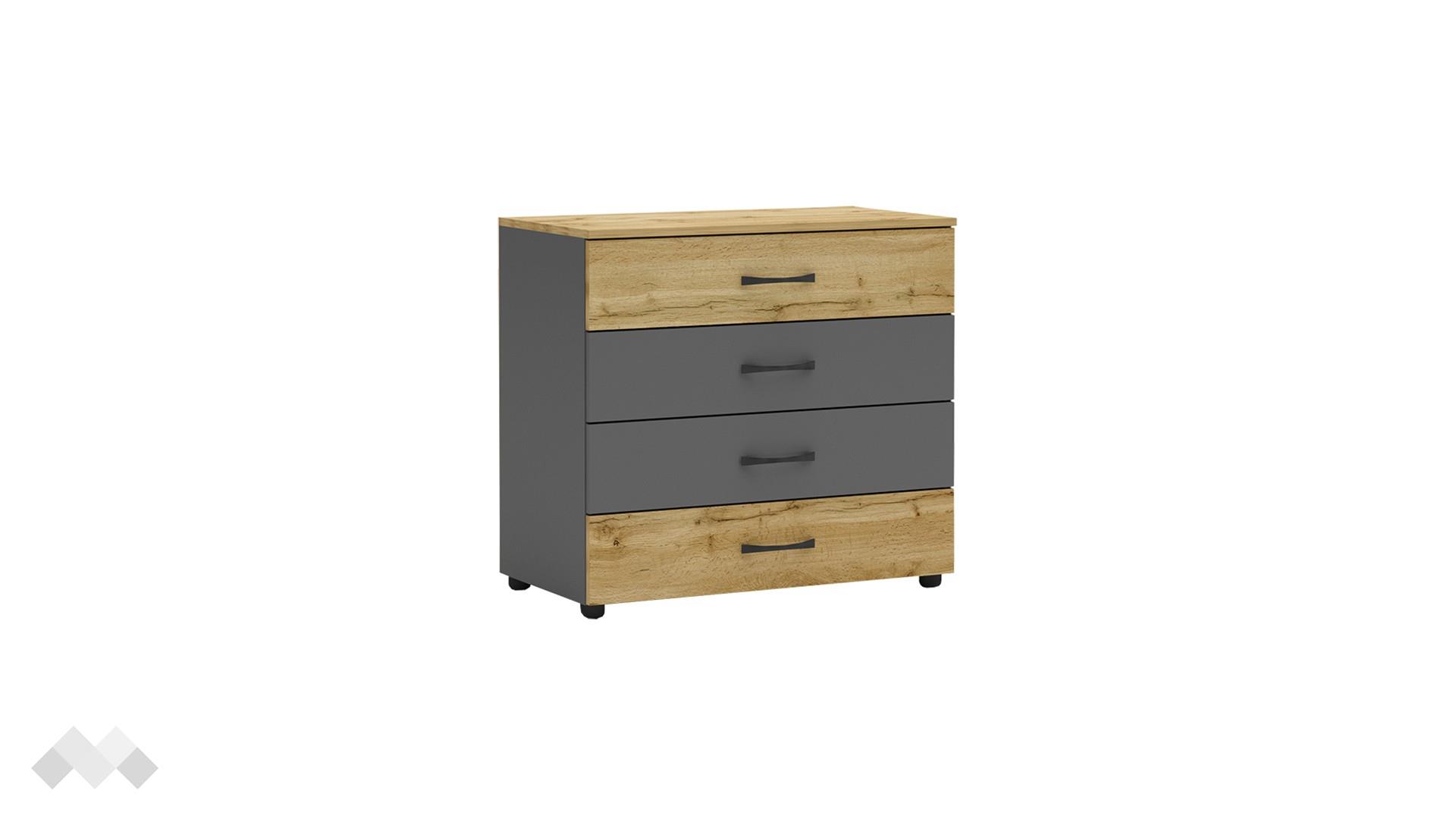 На твое разположение са четири чекмеджета, подходящи за организиране на дрехи, бельо, малки ел. уреди, аксесоари или други необходими за теб неща. Горният плот можеш да използваш за подреждане на декорации, книги, козметика или други вещи, които искаш да ти бъдат винаги под ръка. Ако добавиш подходящо огледало над него, скринът ще се превърне в елегантна тоалетка - незаменим помощник в ежедневието.