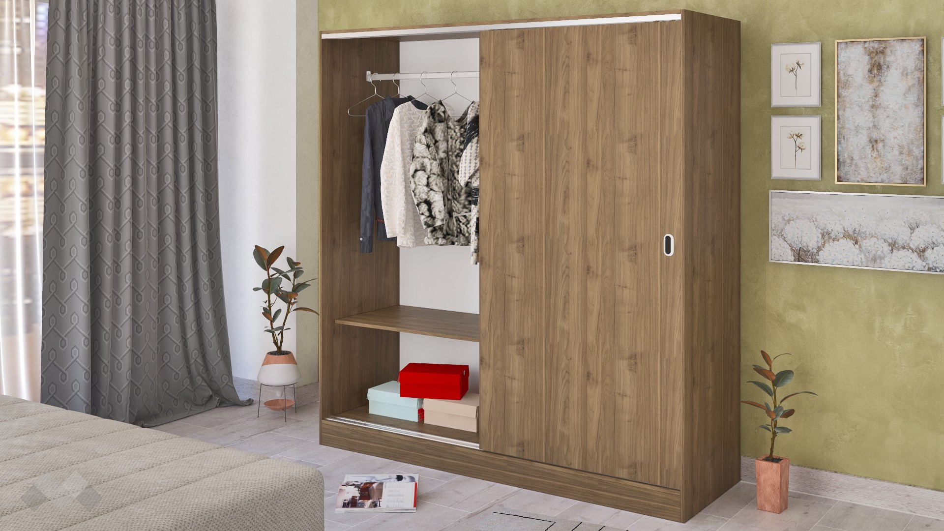 ⭐ Предимства: ✓ плъзгащи врати ✓ 4 рафта ✓ лост за закачалки ✓ модерен декор ✓ практично разпределение ✓ качествена изработка ✓ 16 мм ПДЧ