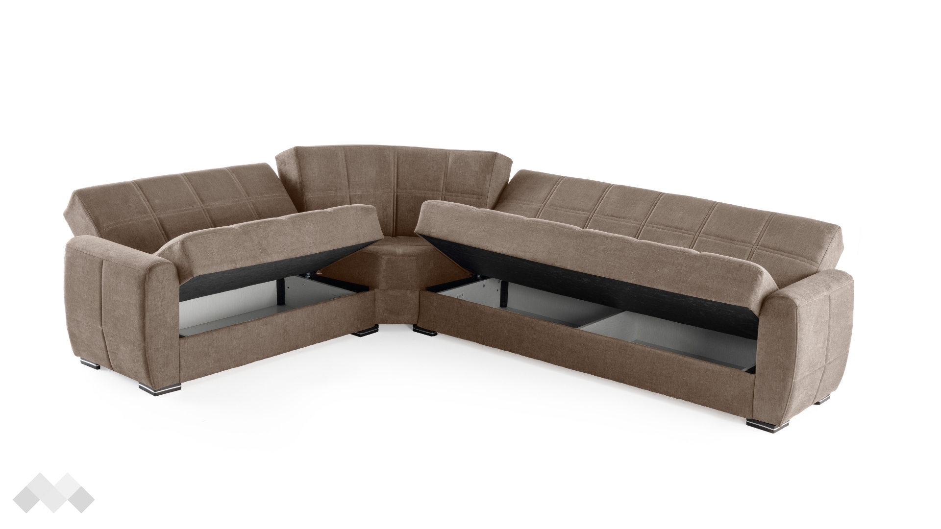 Моделът разполага сотделни зони за сън – една основна и една допълнителна, което го прави изключително подходящ за домакинства, които често посрещат гости или разчитат на дивана за редовно спане. Трансформацията в легло става бързо и лесно чрез удобен клик-клак механизъм, а под седалките се крият две практични ракли за съхранение на спално бельо, одеяла или други вещи.