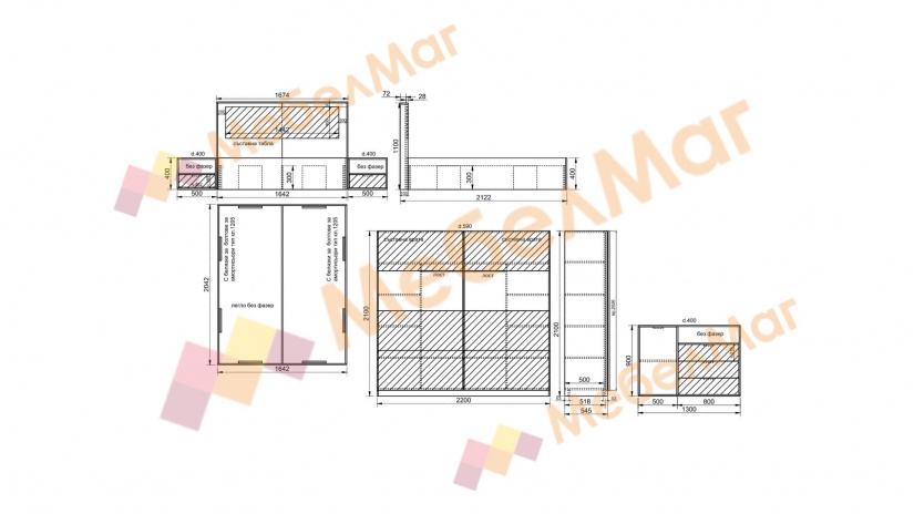 Спалня: Д: 164,2 см Ш: 212,2 см В: 110 см