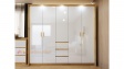 Гардеробът ще се превърне в любимата ти мебел за съхранение. Големият 5-крилен гардероб с широчина 220 см разполага с практично разпределение, включващо цели 13 отделения, три чекмеджета и два лоста за закачалки. Паспарту рамката и вграденото LED осветление допринасят за стилната и уютна атмосфера. Чекмеджетата са снабдени с телескопични сачмени водачи, които са устойчиви на натоварване и осигуряват пълно изтегляне за лесен достъп до съдържанието. Вратите на гардероба са оборудвани с механизми за плавно затваряне, осигурявайки комфорт при ежедневна употреба.