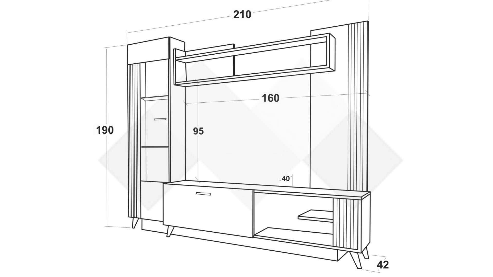 Място за ТВ: Д: 160 см Ш: 40 см В: 95 см.