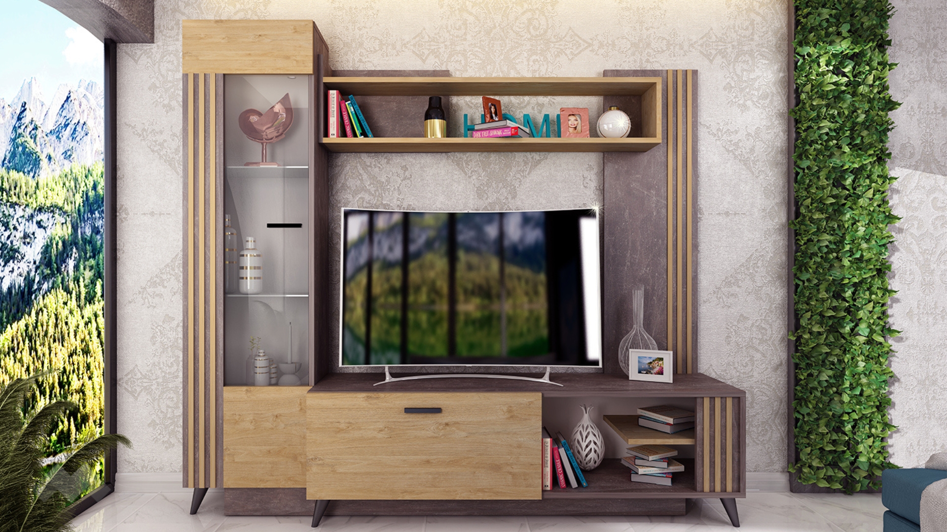 Благодарение на множеството отворени и затворени пространства за съхранение на вещи, секция Хана ти предлага функционалност, която може да ти бъде от огромна полза. В основата има плот за телевизор, един просторен затворен шкаф и един отворен шкаф - достатъчно място за твоите ТВ приемници, DVD плейъри или друга техника. От лявата страна е долепен витринен шкаф със стъклена вратичка, подходящ за съхранение на всичките ти красиви сервизи, съдове или други вещи. Над мястото за телевизор е разположен широк отворен шкаф, който е идеален за любимите ти сувенири, фотоси, книги и декорации.